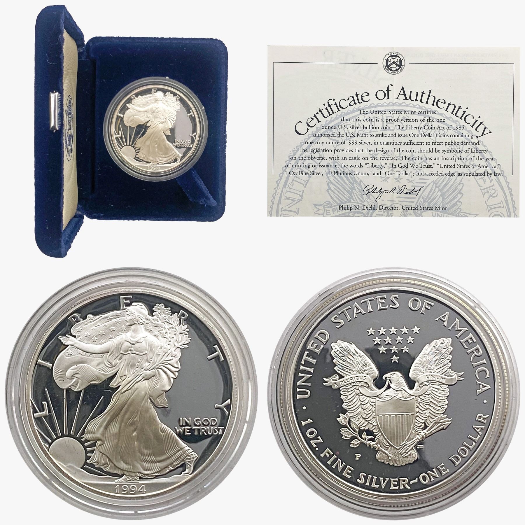 [5] 1994-2001 Proof Silver Eagles ASE 1oz