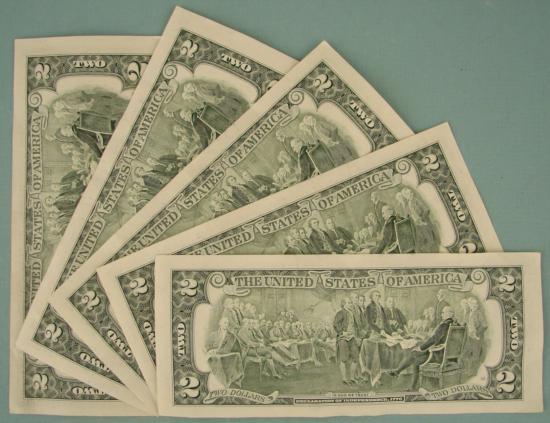 (5) 1995 $2 Notes Two Dollar Bills