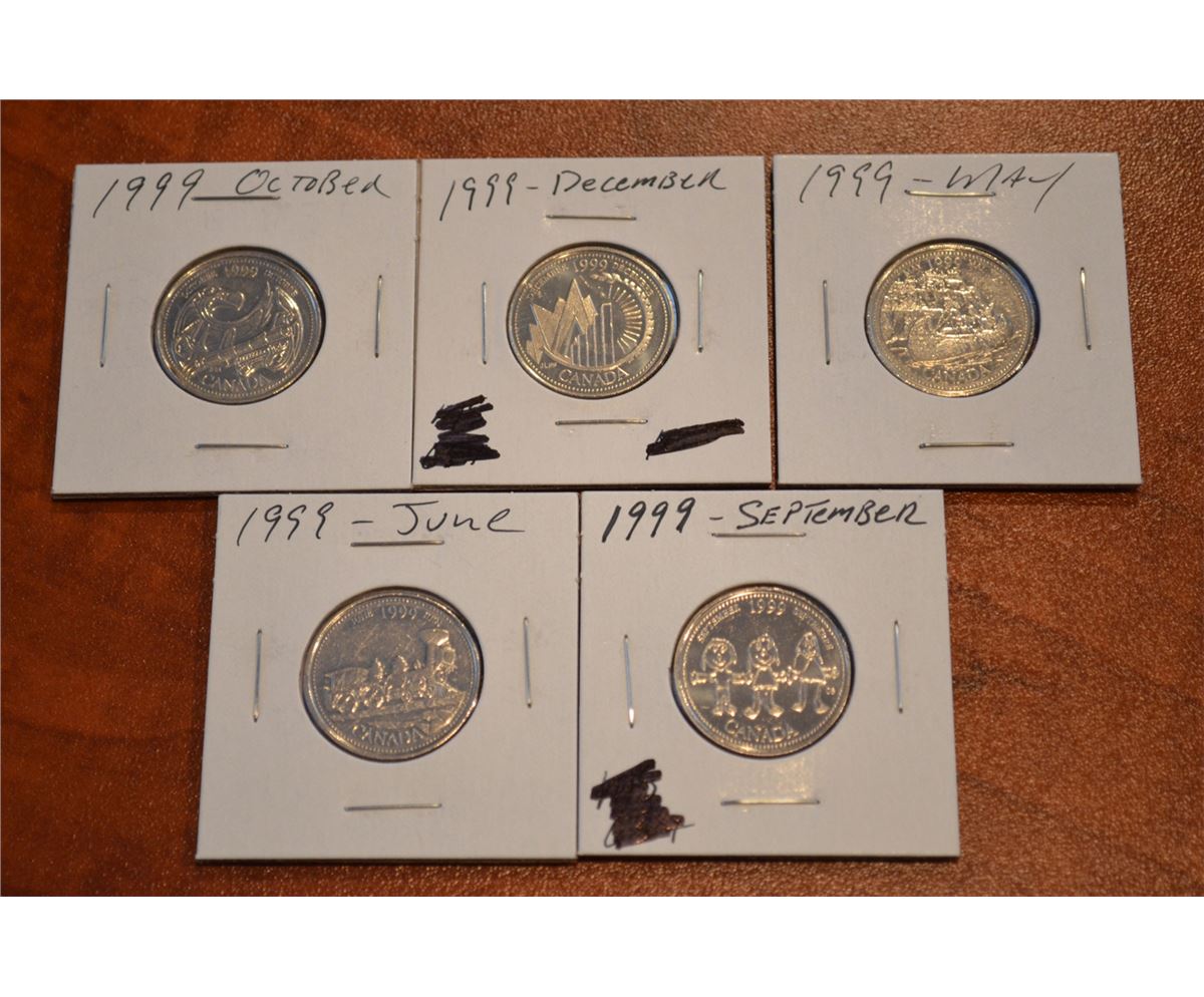 (5) 1999 Canada Quarter - (Mixed) - UNC
