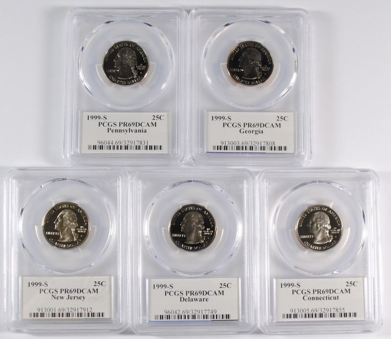 5 - 1999-S PCGS PR69DCAM STATE QUARTER LOT - GEORGIA, PENN, NEW JERSEY,