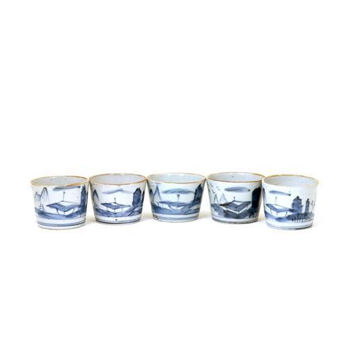 Set of 5 19th Century Japanese Blue & White Imari Soba Choko Cups