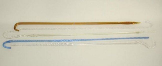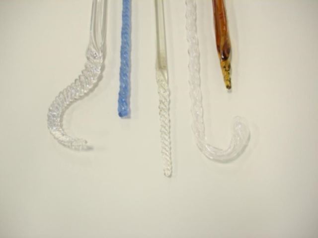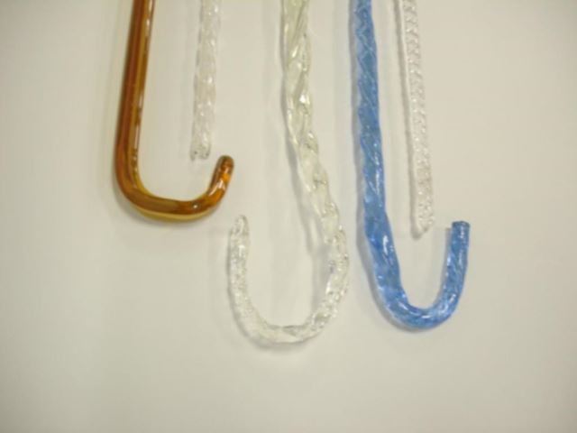 3 clear 2 colored. Each approx. 50" H. From a 40 year NYC collector's compilation. 3 handles chipped, all ends chipped.