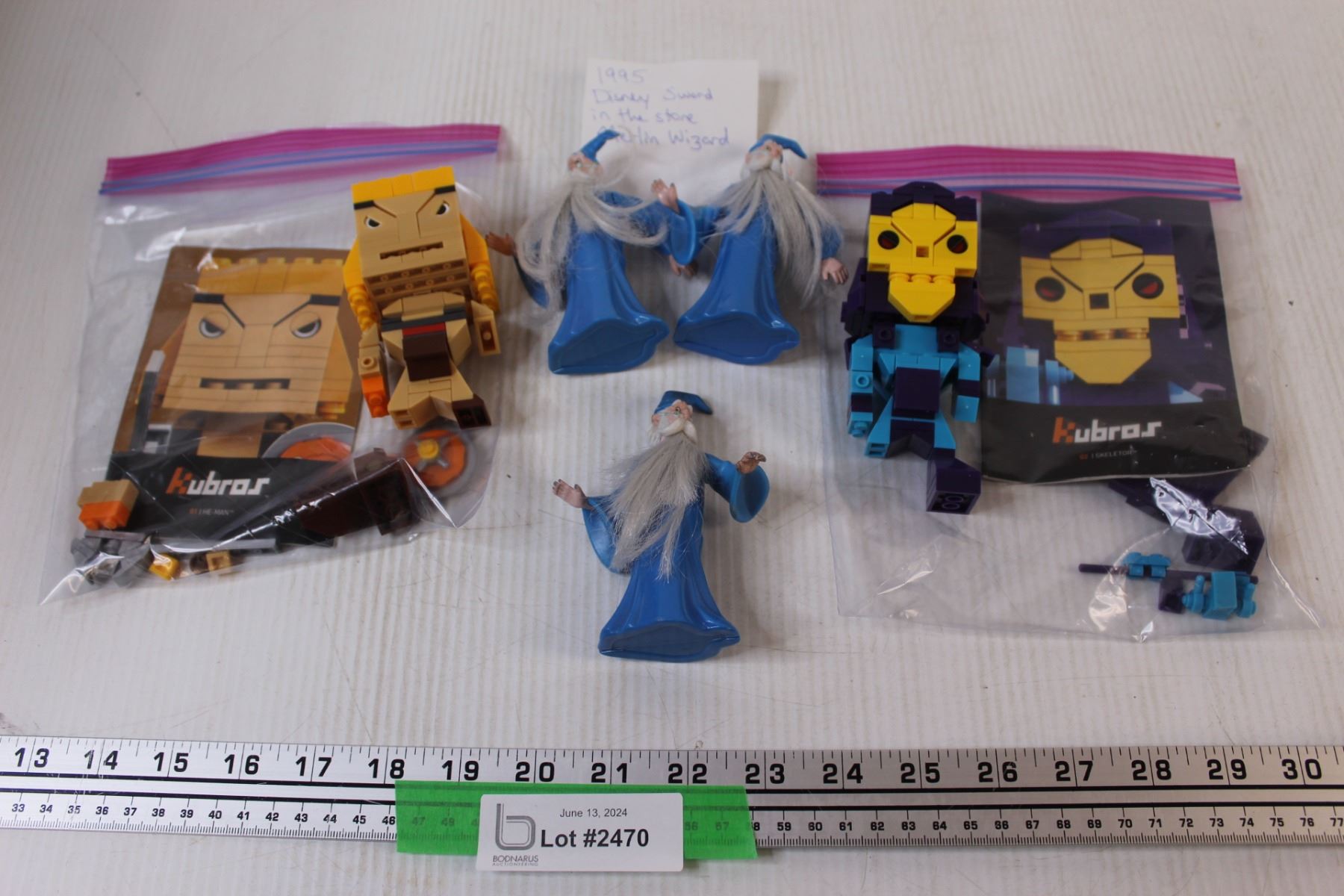 (5) 2 - KUBROS - He-Man & Skeletor & 3 - Merlin the Wizard Sword in Stone Figurines