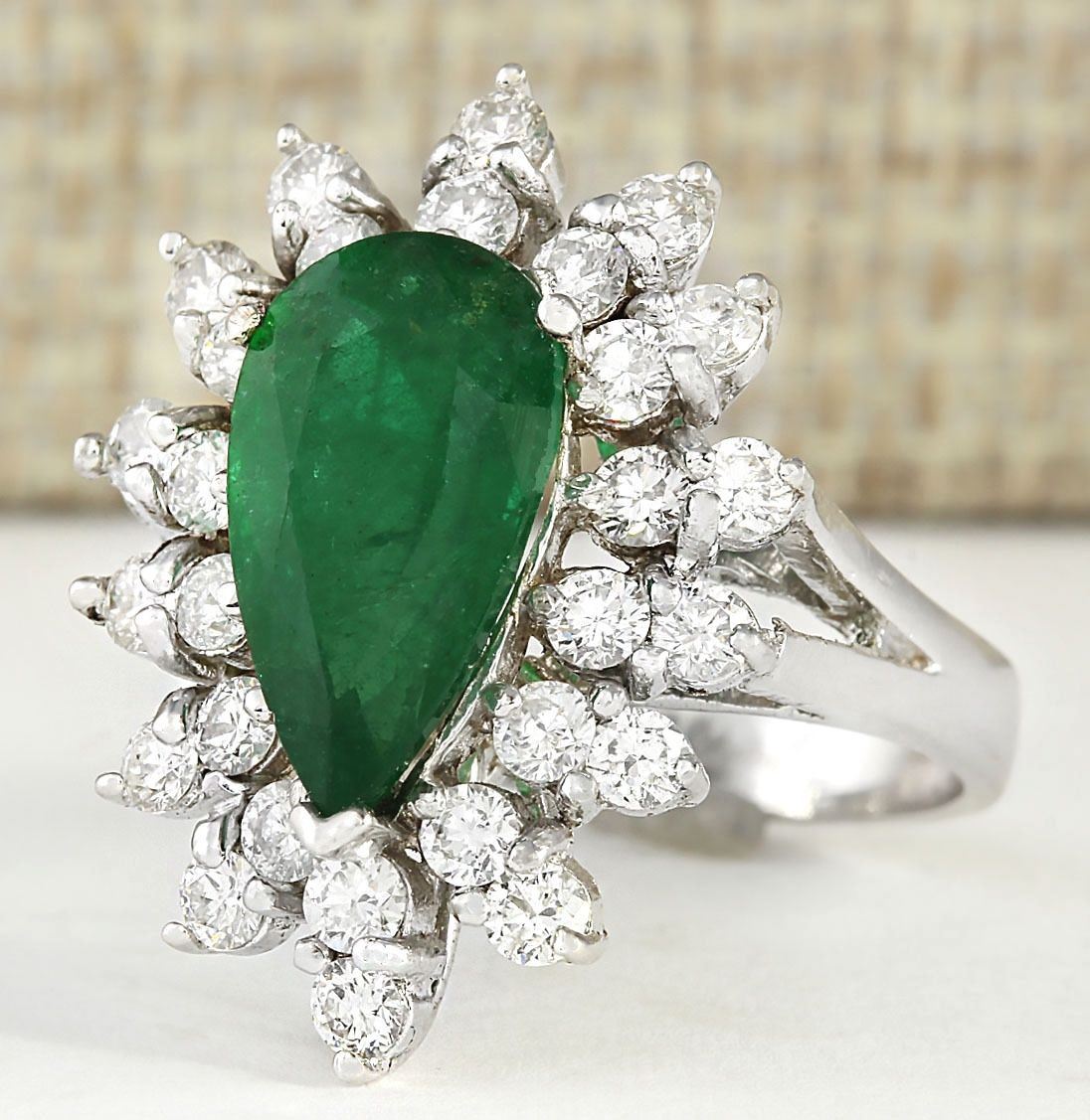5.20 CTW Natural Emerald And Diamond Ring In 18K White Gold
