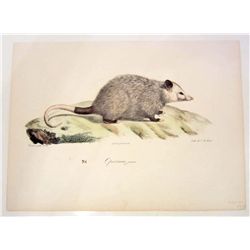 RARE C. 1840 "OPOSSUM MALE" HAND COLORED LITHOGRAPH