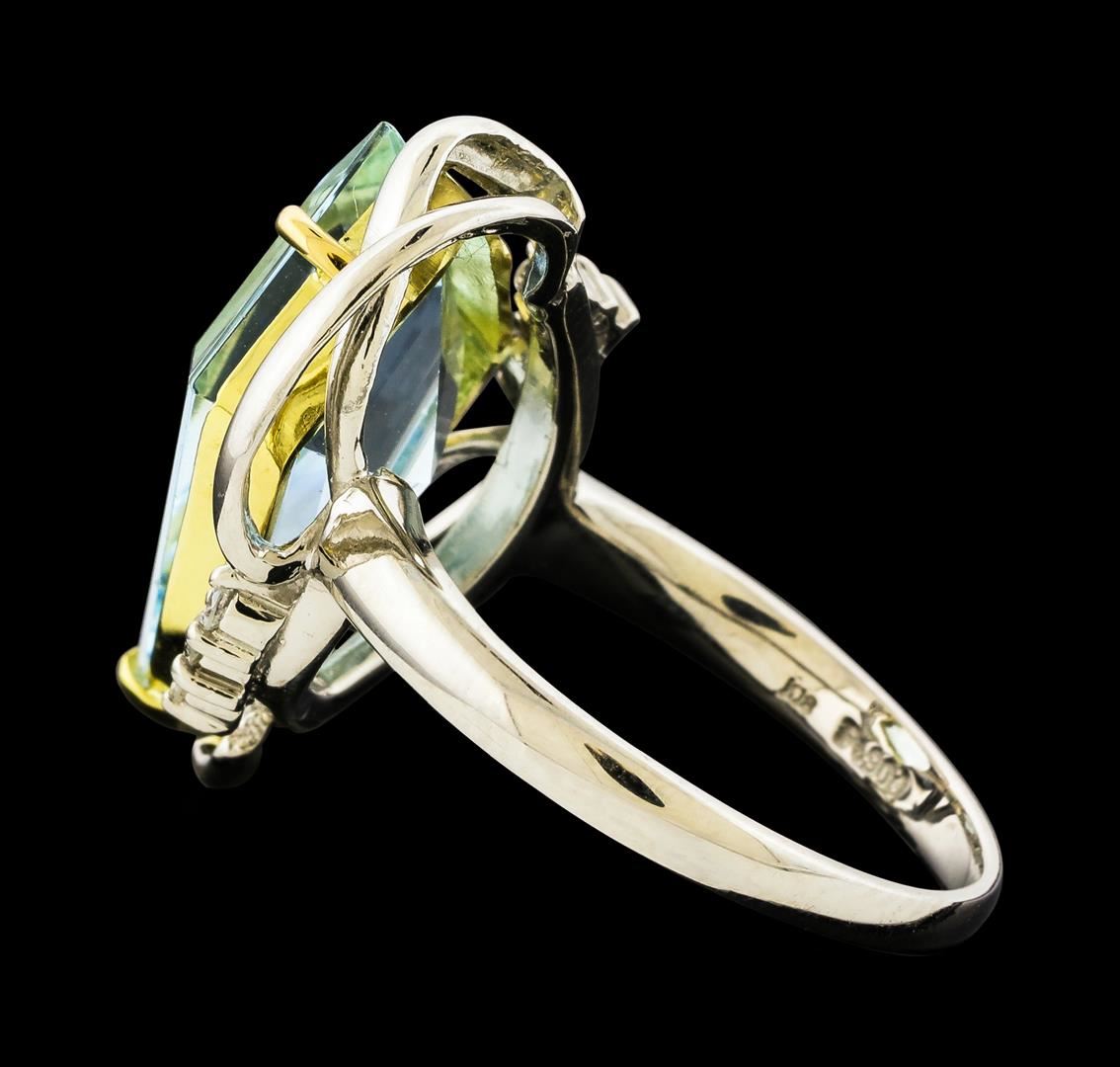 One ring featuring: Platinum and Yellow Gold containing Aquamarine with a total weight of 5.20ct and Diamonds with a total weight of 0.12ct. Total Weight of Ring: 7.5 grams.