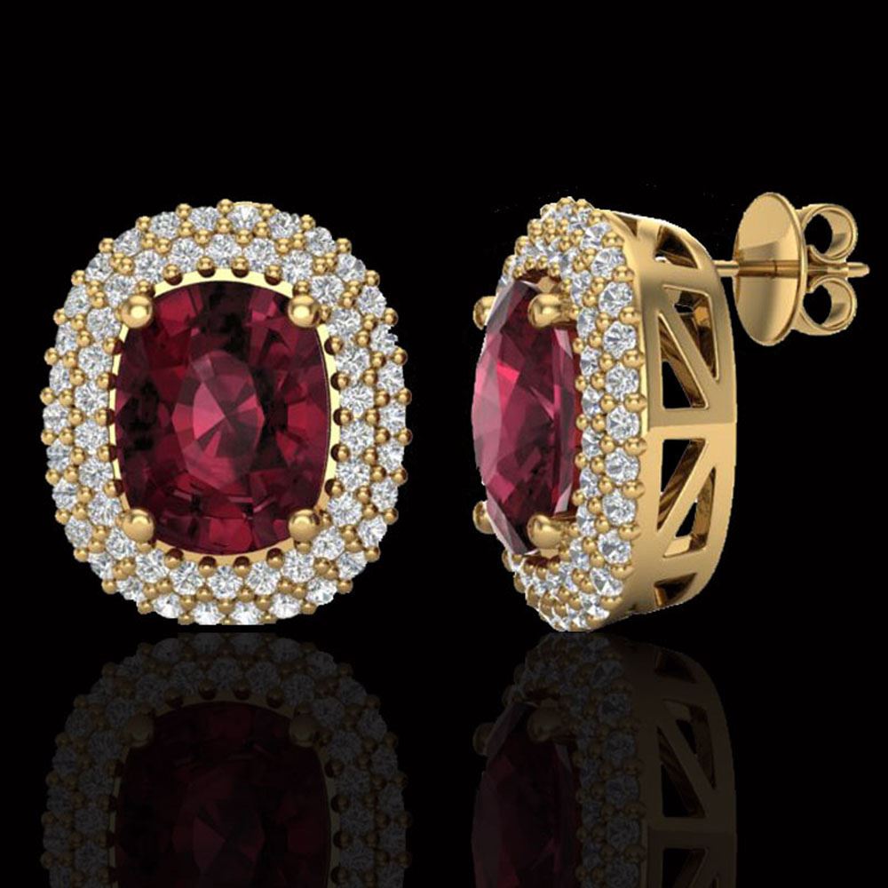 REF-107G3W - SKU: 20116 ---- 5.20 ctw Garnet & Micro Pave VS/SI Diamond Earrings 10k Yellow Gold