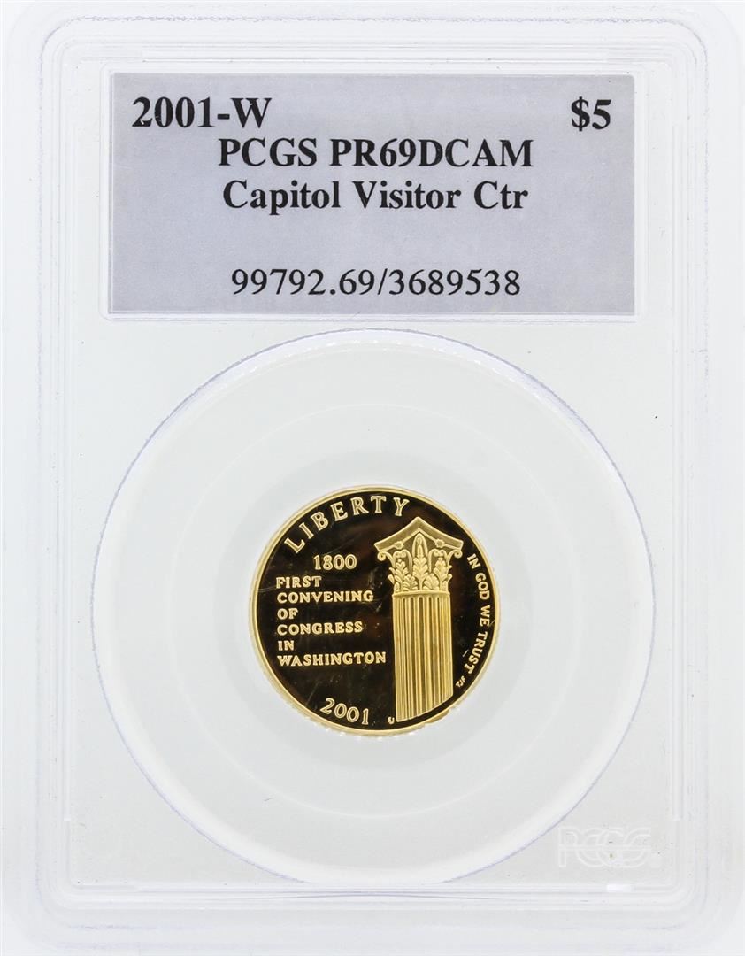 One $5 2001-W PCGS PR69DCAM Capitol Visitor Center Gold Coin. PCGS Certified.