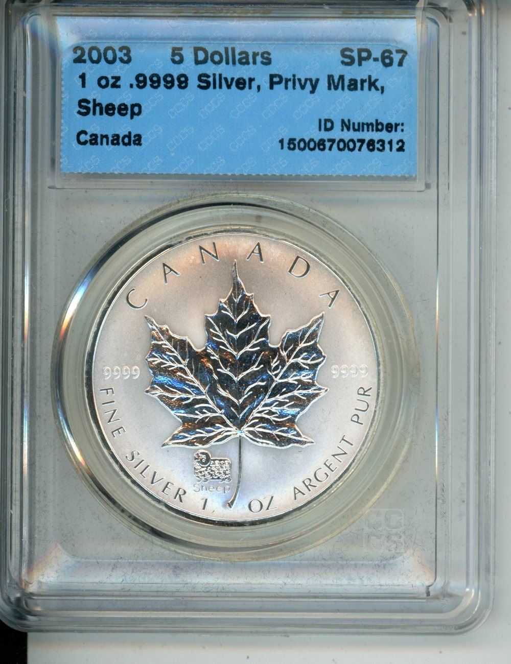 $5 2003 Canadian Silver Coin Sheep Privy 0 RCM - .9999 Silver