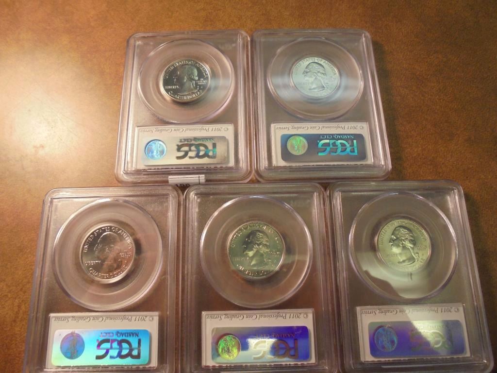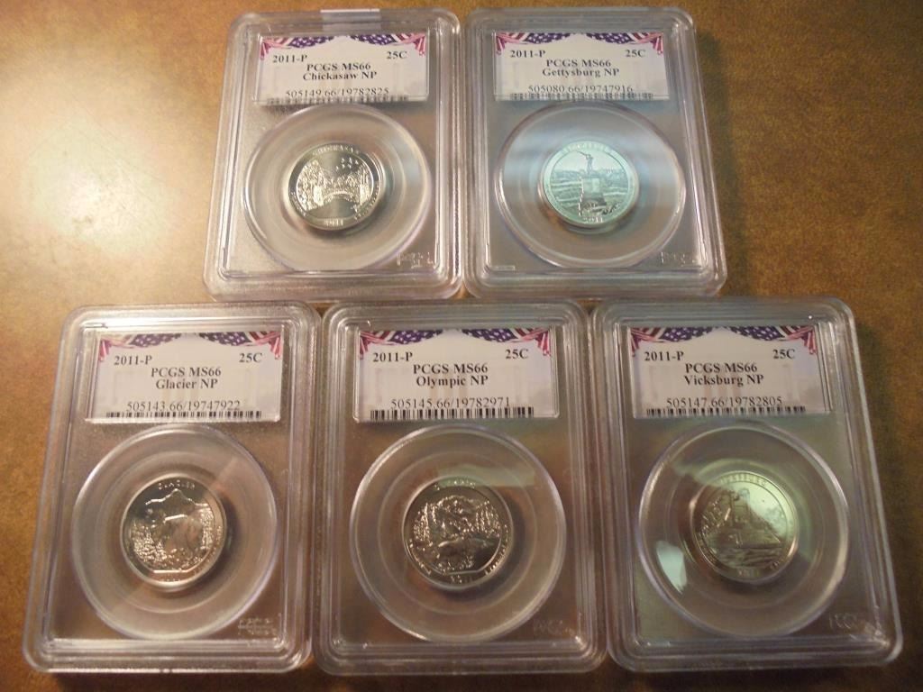 5-2011-P N.P. QUARTERS PCGS MS66'S CHICKASAW, GETTYSBURG, GLACIER, OLYMPIC AND VICKSBURG. 5 COINS TO
