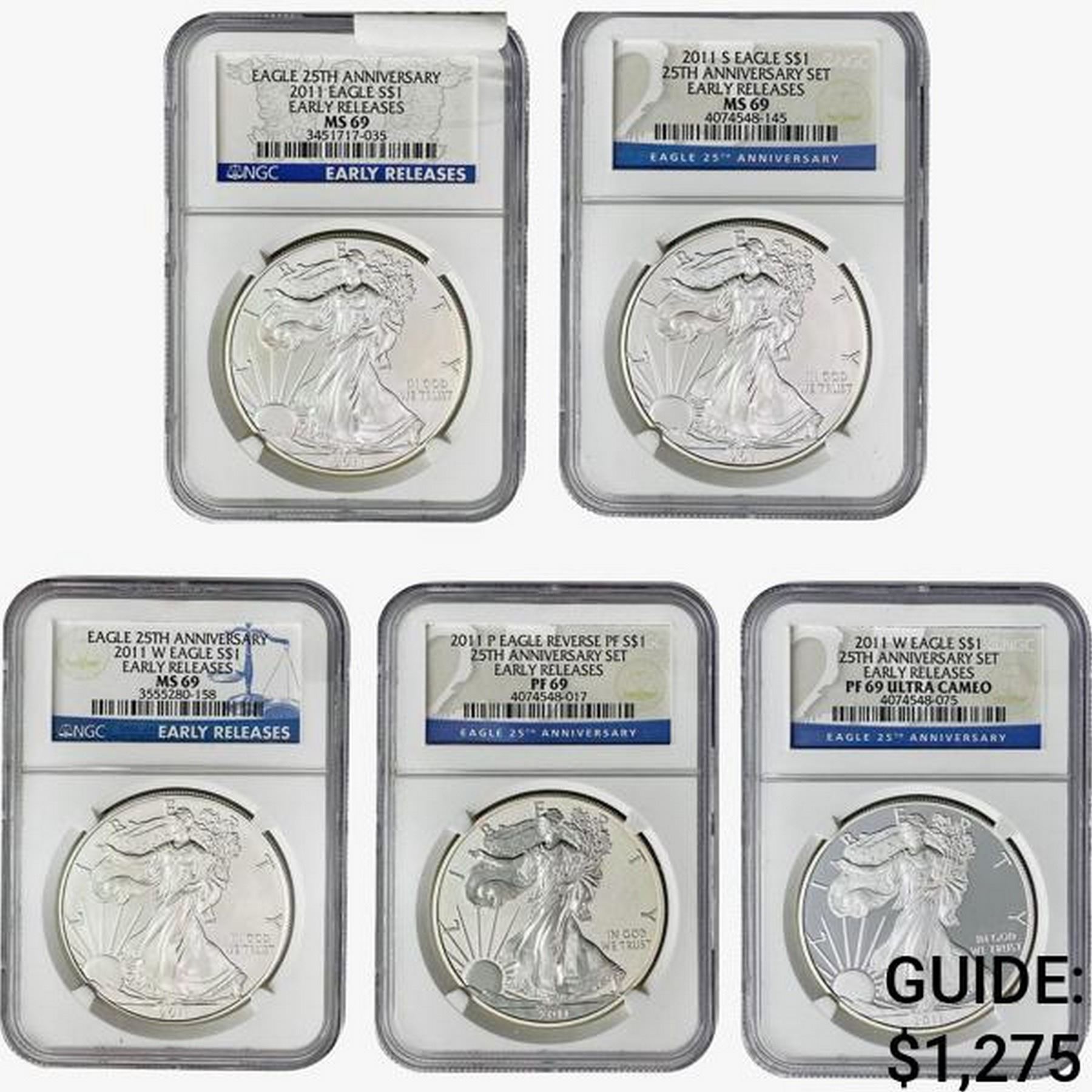 [5] 2011 Silver Eagle NGC MS/PF69 25TH ANN. SET