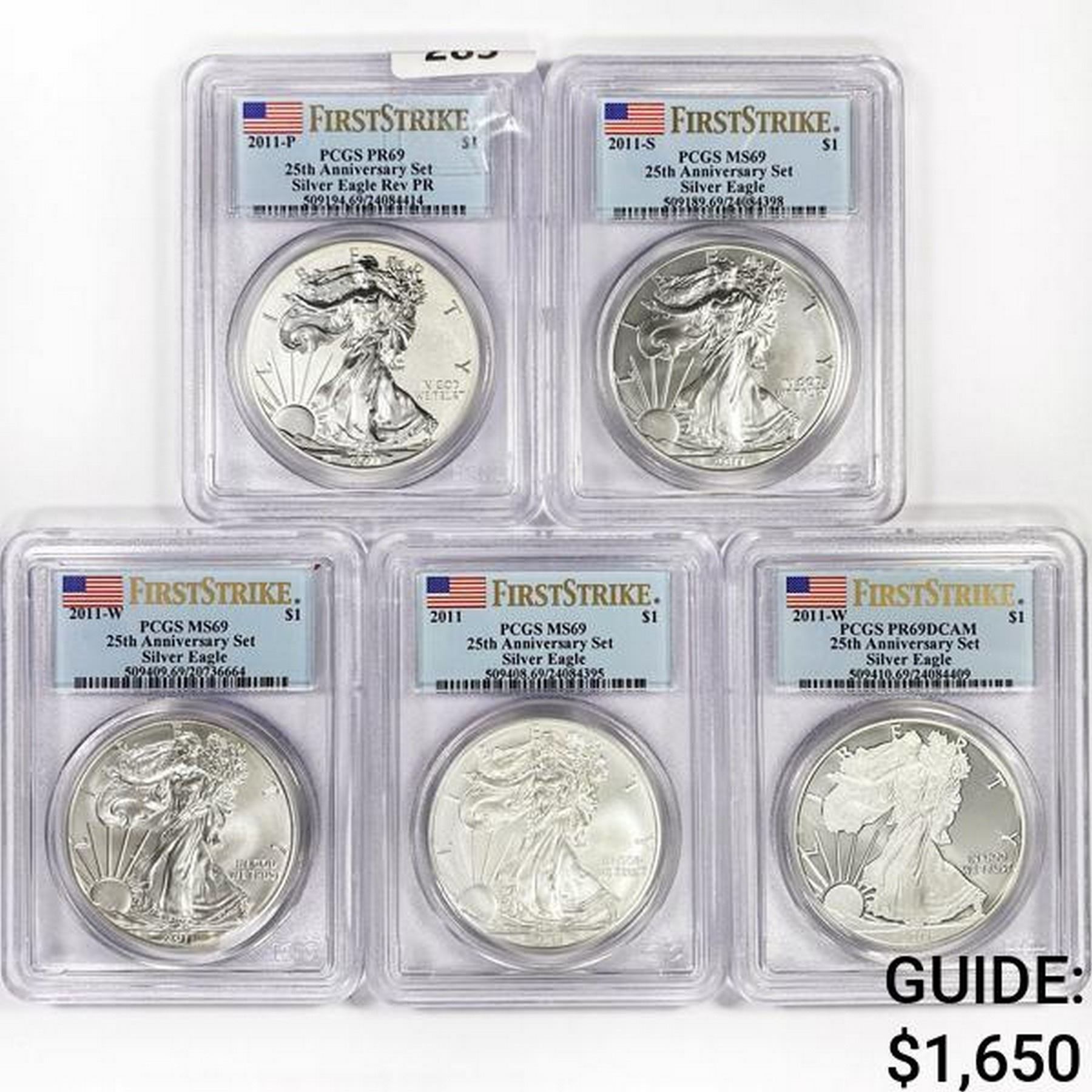 (5) 2011 US 5oz Silver $1 Eagle PCGS MS/PR69