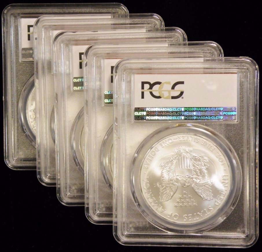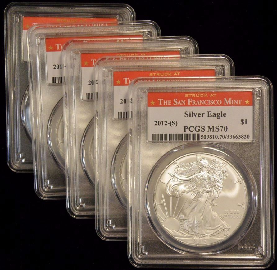 (5) 2012 "S" PCGS MS70 American Silver Eagle