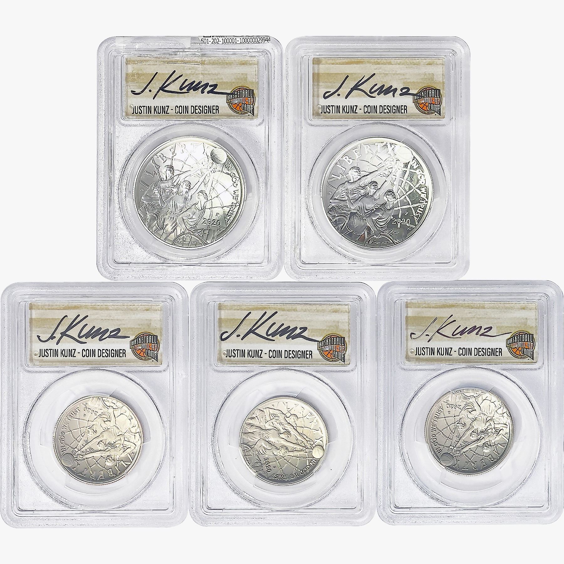 [5] 2020 Silver 50C&$1 Base. HoF J.Kunz PCGS MS/PR70
