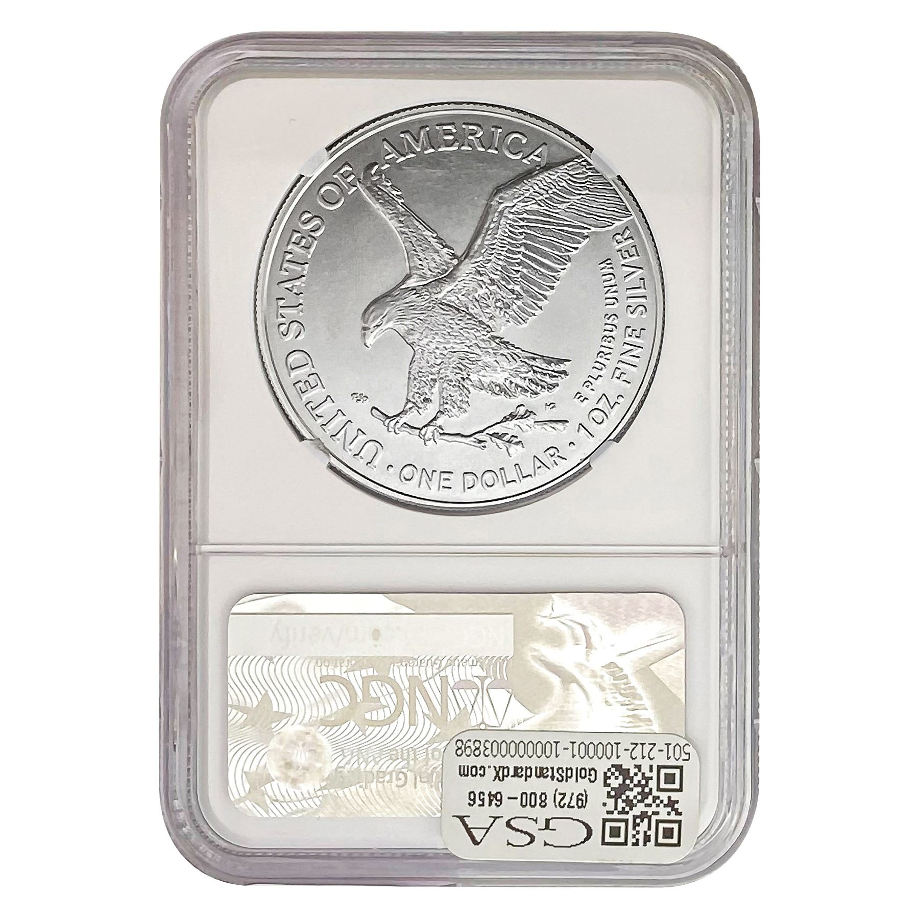 e. Coins sold referencing a third-party grading service are sold “AS IS” without any express or implied warranty, except for a guarantee by GSA that they are genuine. Removal or alteration of the holder, voids all of Bidder’s claims concerning that Product. Certain warranties may be available from the grading services and Bidders are referred to them for further details: Numismatic Guaranty Corporation (NGC), PO Box 4776, Sarasota, FL 34230, www.ngccoin.com/services/writtenguarantee.asp; Professional Coin Grading Services (PCGS), PO Box 9458, Newport Beach, CA 92658, www.pcgs.com/guarantee.html; ANACS, 6555 S. Kenton St., Ste. 303, Englewood, CO 80111; and Independent Coin Grading Co. (ICG), 7901 East Bellview, Ave., Suite 50, Englewood, CO 80111.