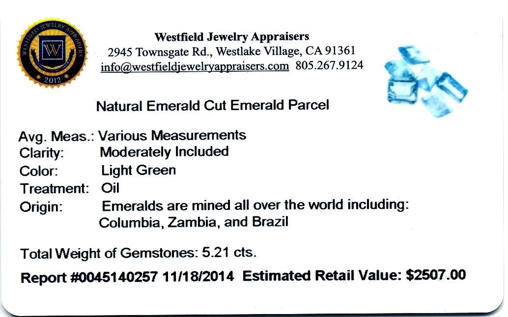 5.21cts. Natural Emerald Cut Emerald Parcel Westfield Appraised at $2,507.00.