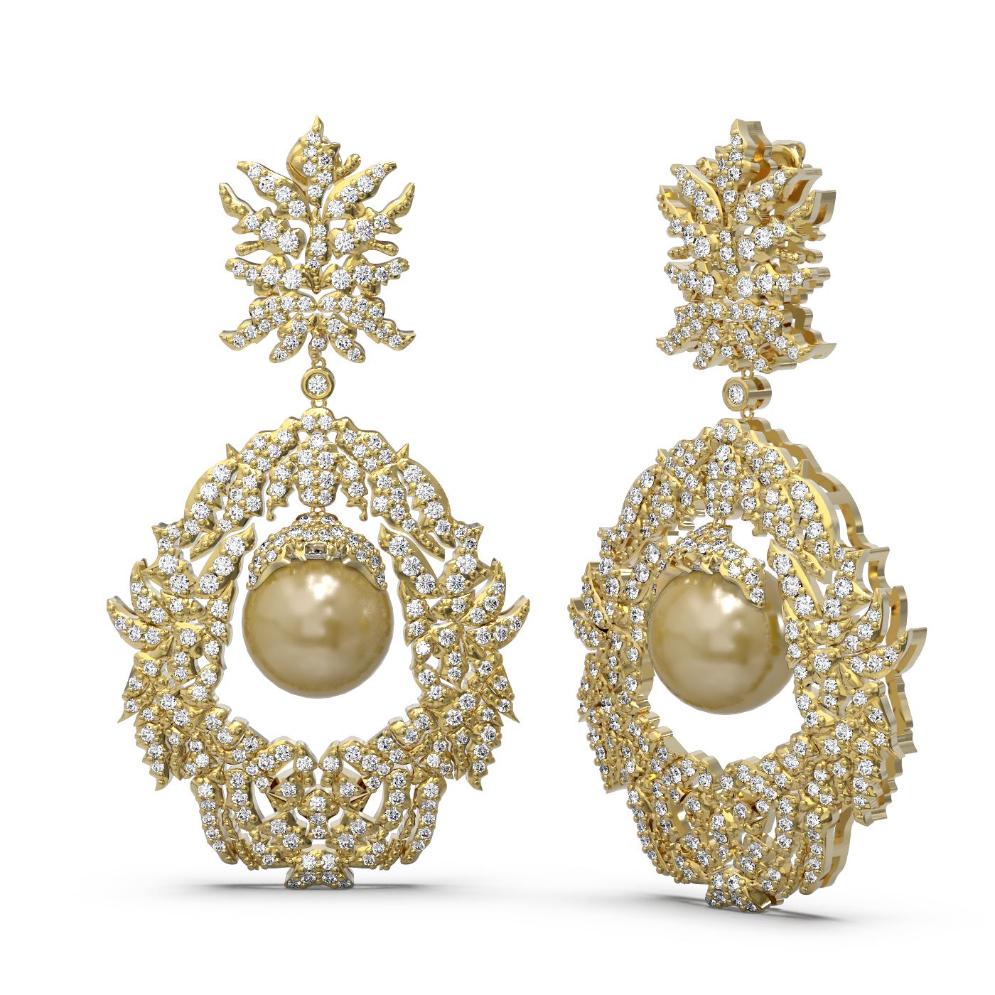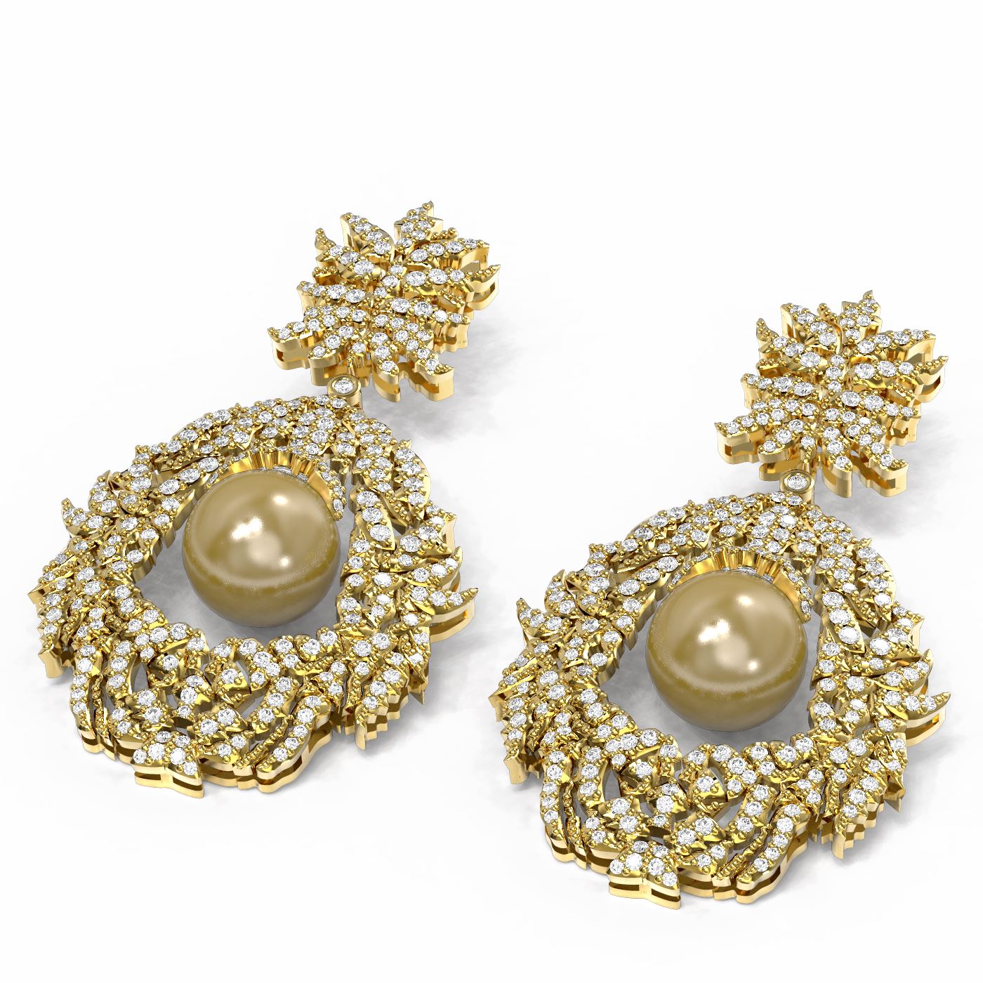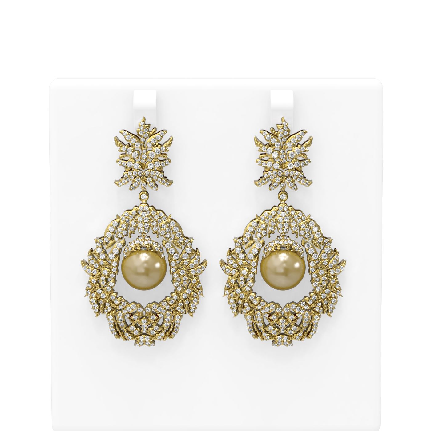 REF-587M5G - SKU: 59926 ---- 5.22 ctw Diamond Golden Pearl Earrings 18K Yellow Gold