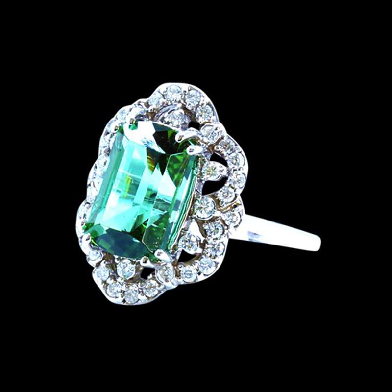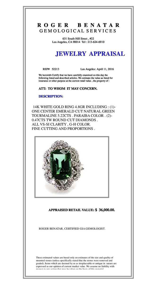 14K WHITE GOLD NATURAL COPPER BEARING TOURMALINE RING:4.8 GRAMS/DIAMOND:0.47CT/COPPER BEARING TOURMALINE:5.22CT/#GVR1111