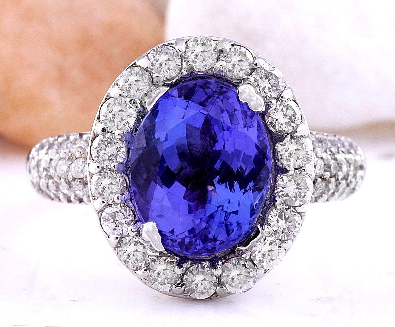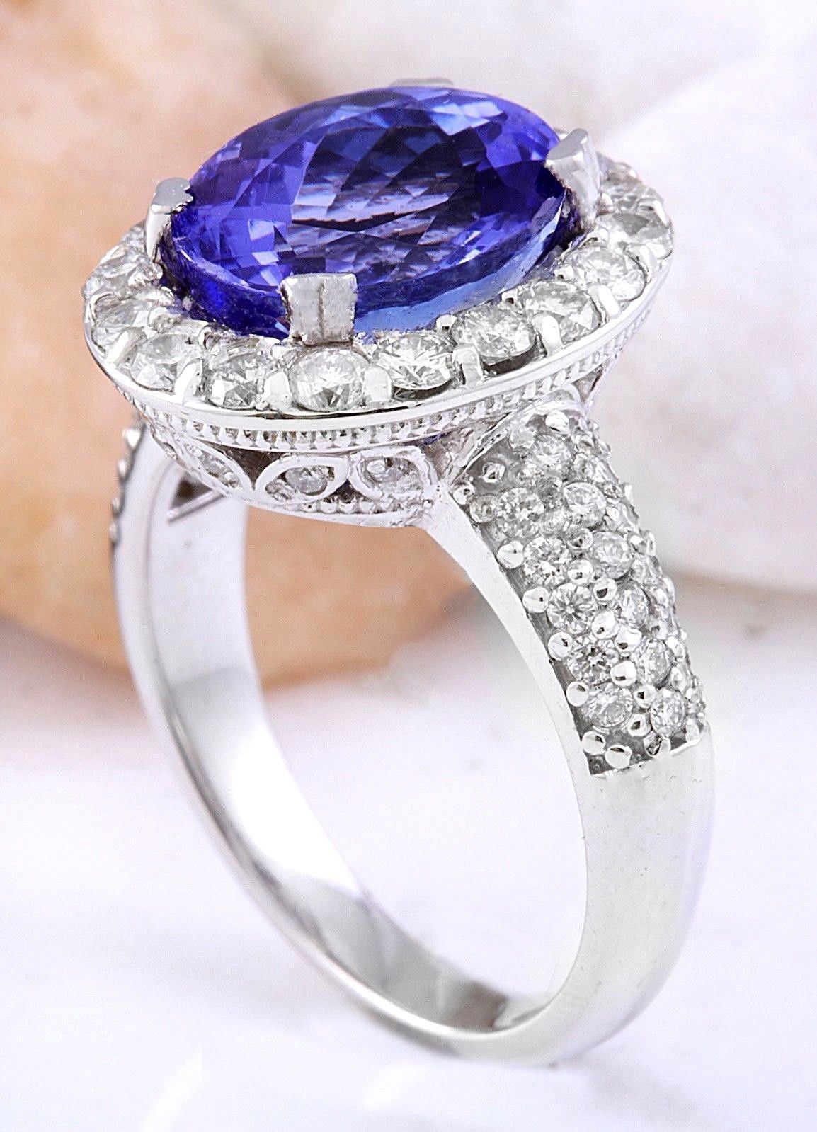 5.24 Carat Natural Tanzanite 18K Solid White Gold Diamond Ring