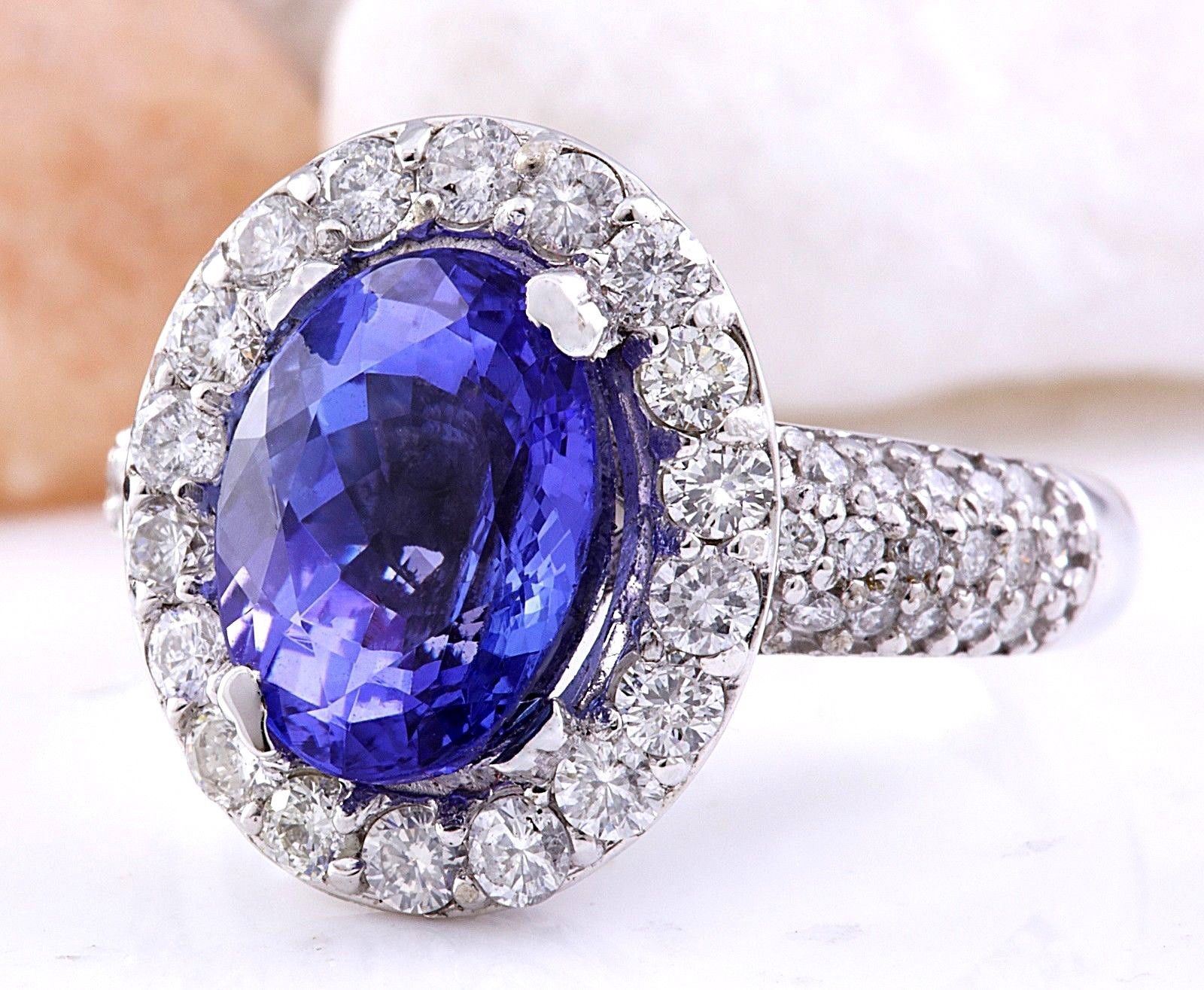 5.24 Carat Natural Tanzanite 18K Solid White Gold Diamond Ring