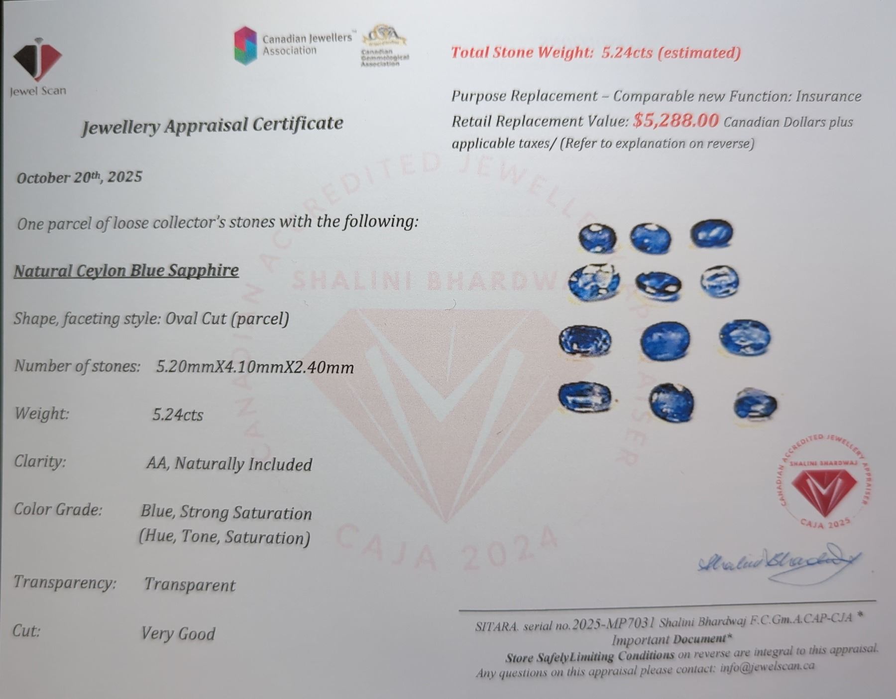 5.24 ct Certified Blue Sapphire gemstone Parcel ($5,288 Appraisal)