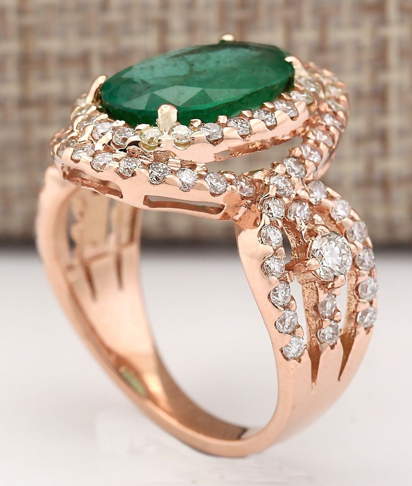 5.25 CTW Natural Emerald And Diamond Ring In 18K Rose Gold