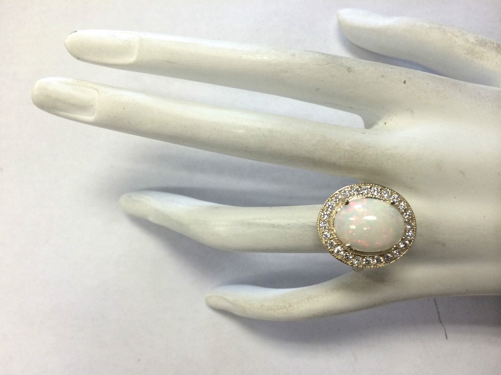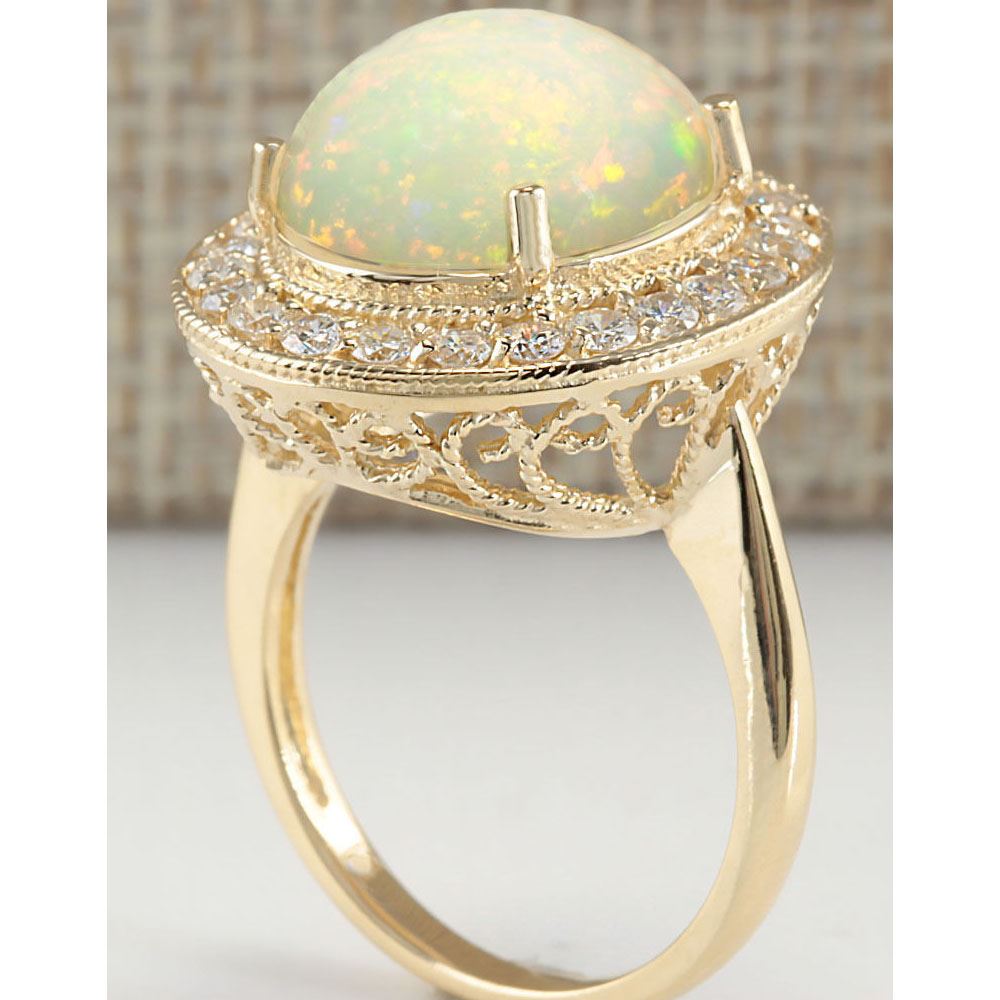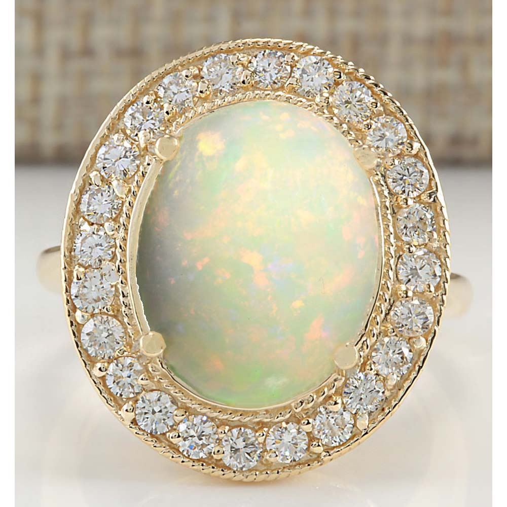 5.25 CTW Natural Opal And Diamond Ring In 14K Yellow Gold