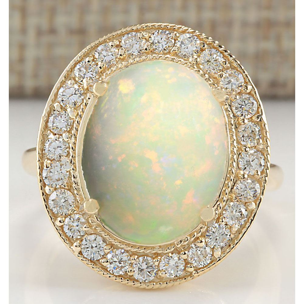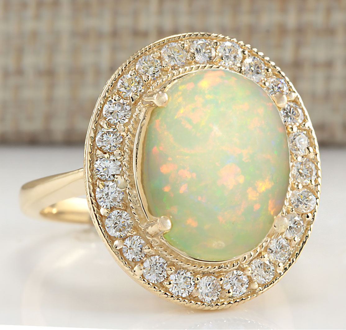 5.25 CTW Natural Opal And Diamond Ring In 18K Yellow Gold