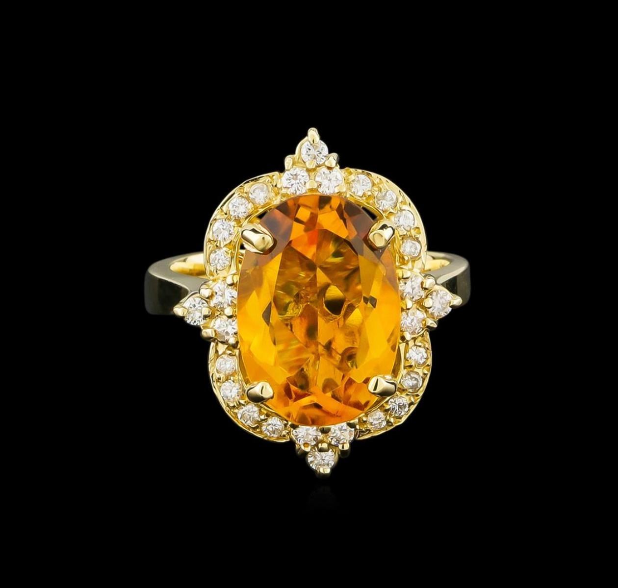 One Ring featuring: 14KT Yellow Gold weighing 7 grams containing one Citrine center stone with a total weight of 5.25ct and Diamonds with a total weight of 0.36ct.