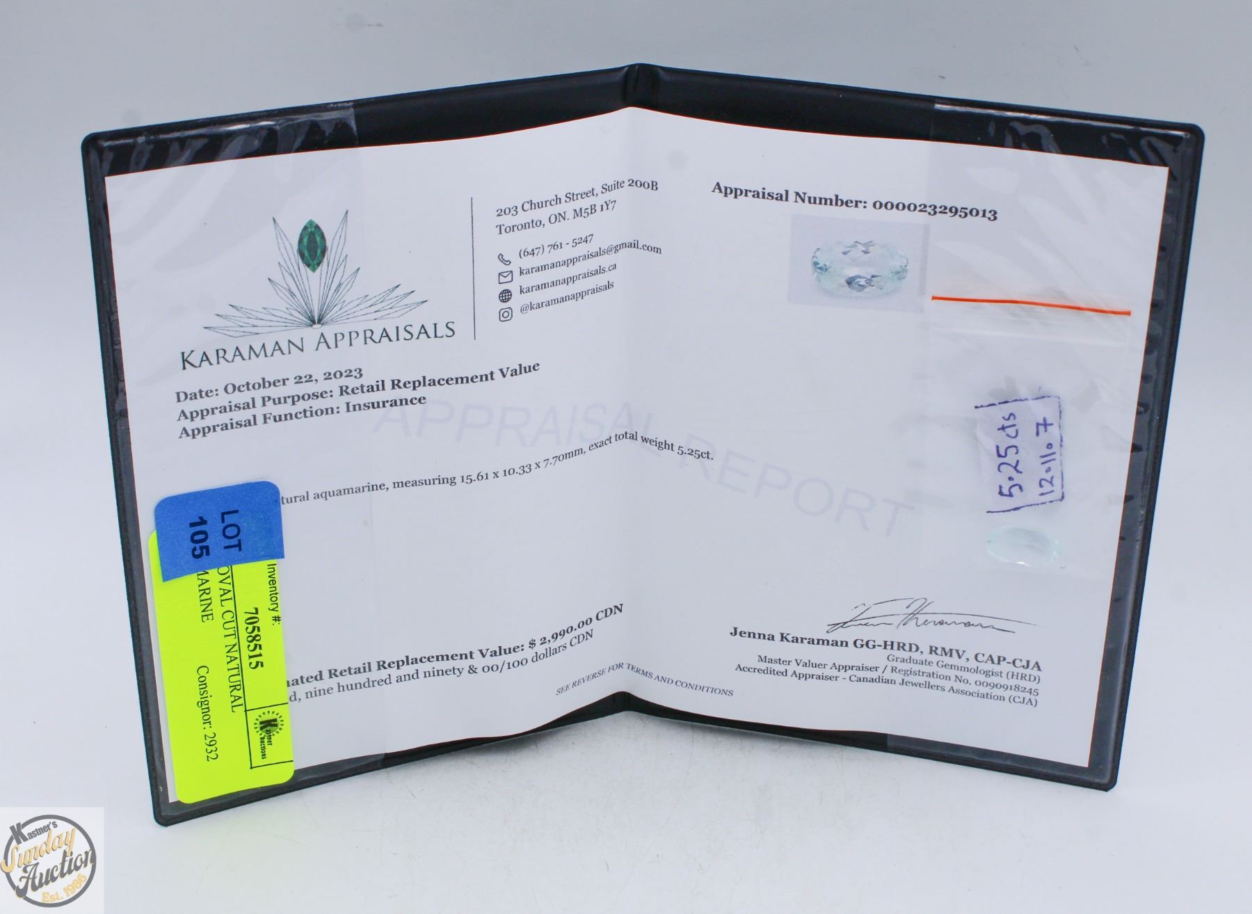 5.25CT OVAL CUT NATURAL AQUAMARINE