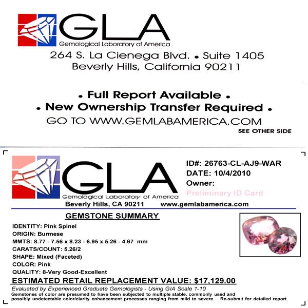 Excellent pink colored parcel 2 pieces mixed cut; lab quality evaluation 8; treatment as noted; Gem Guide wholesale $3156-$5260; full retail appraisal $17129; full lab evaluation available