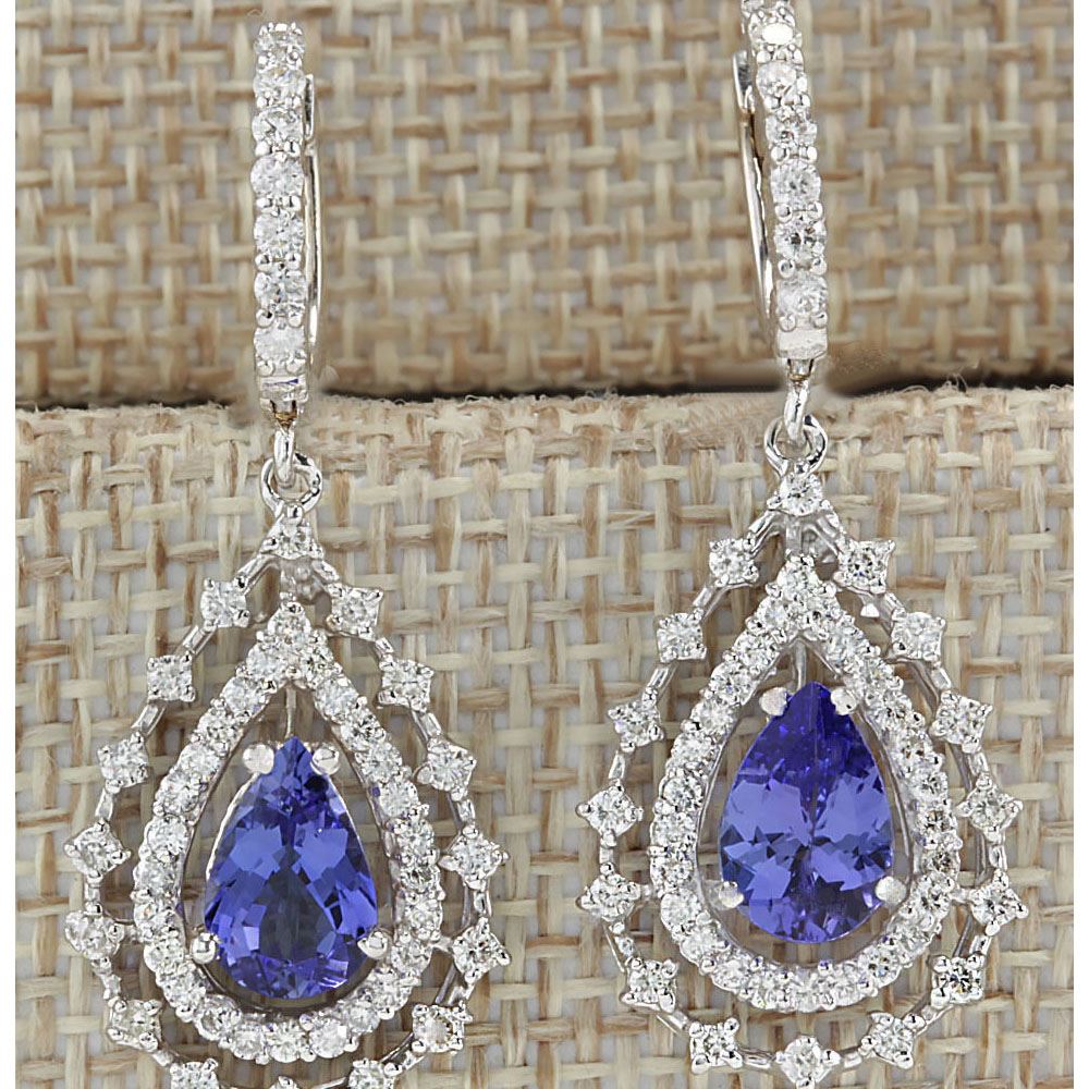 5.27 CTW Natural Tanzanite And Diamond Earrings 18K Solid White Gold