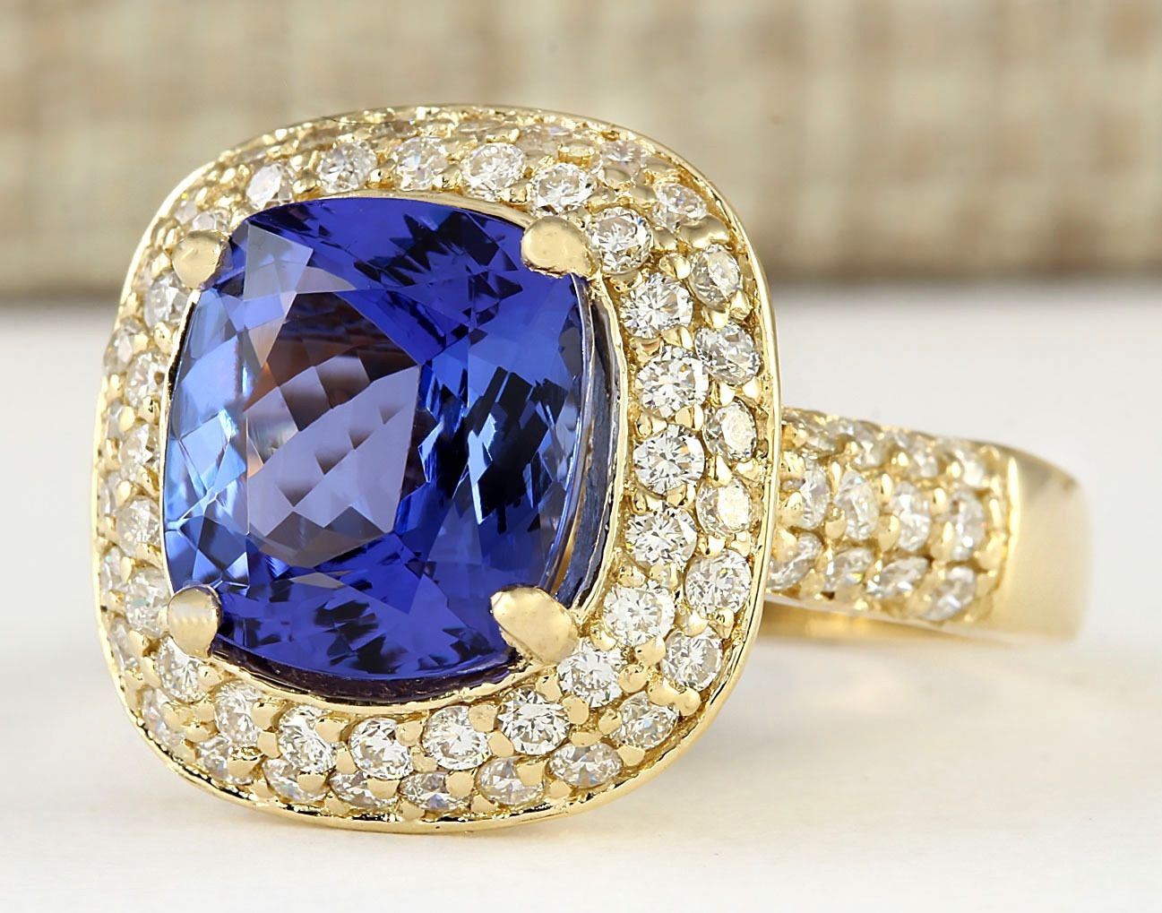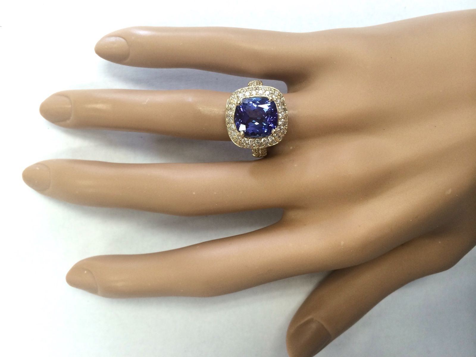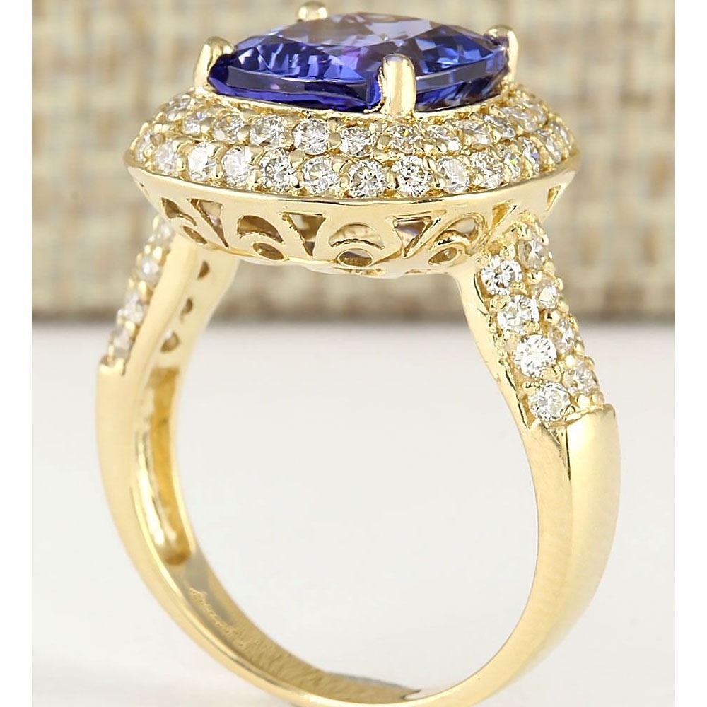 5.27 CTW Natural Tanzanite And Diamond Ring In 14k Yellow Gold
