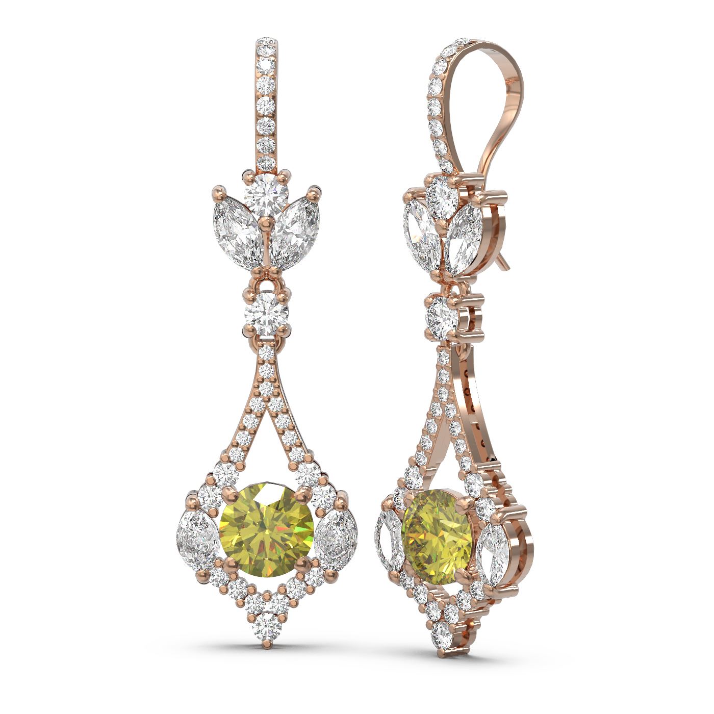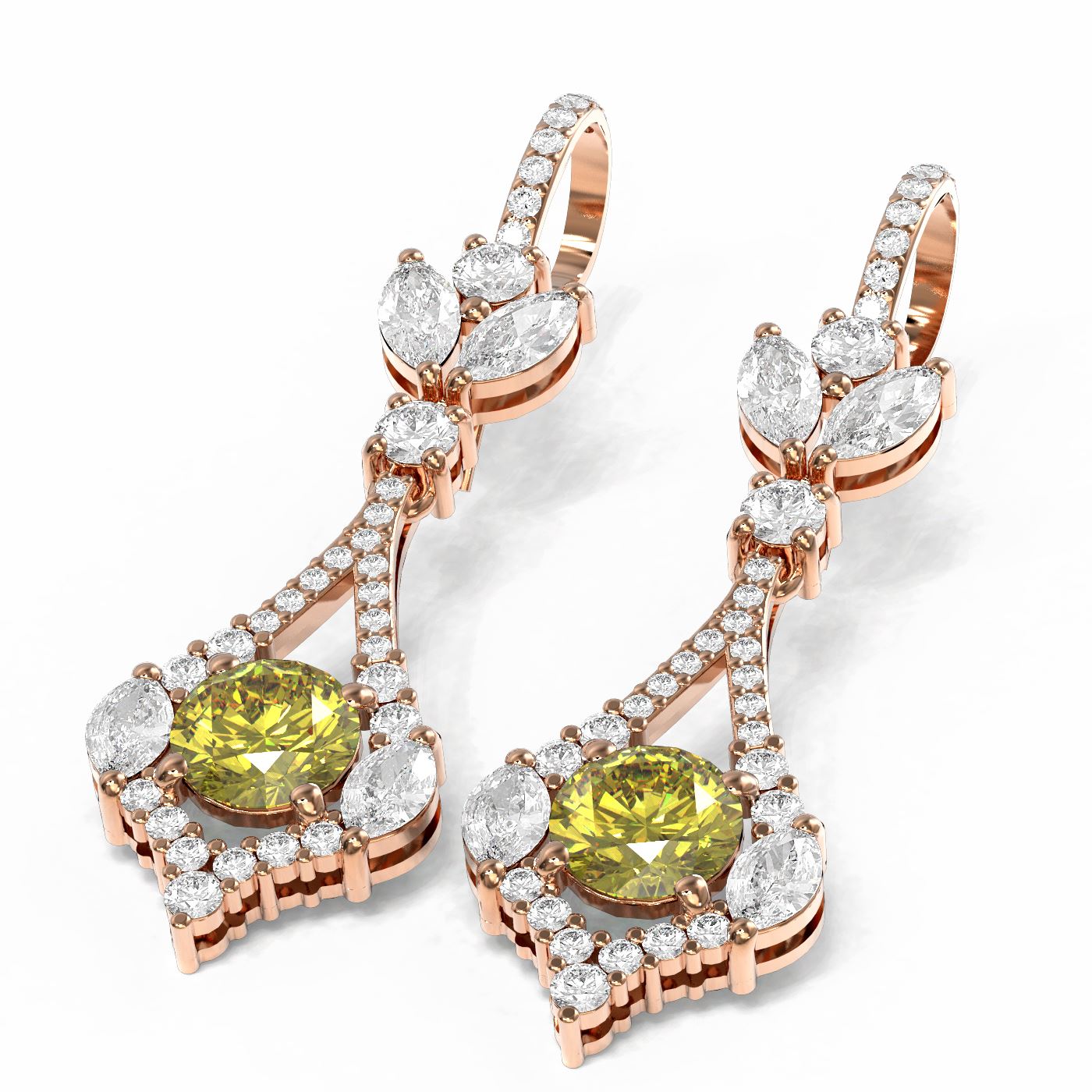 REF-800G2W - SKU: 60045 ---- 5.27 ctw Fancy Yellow Diamond Earrings 18K Rose Gold
