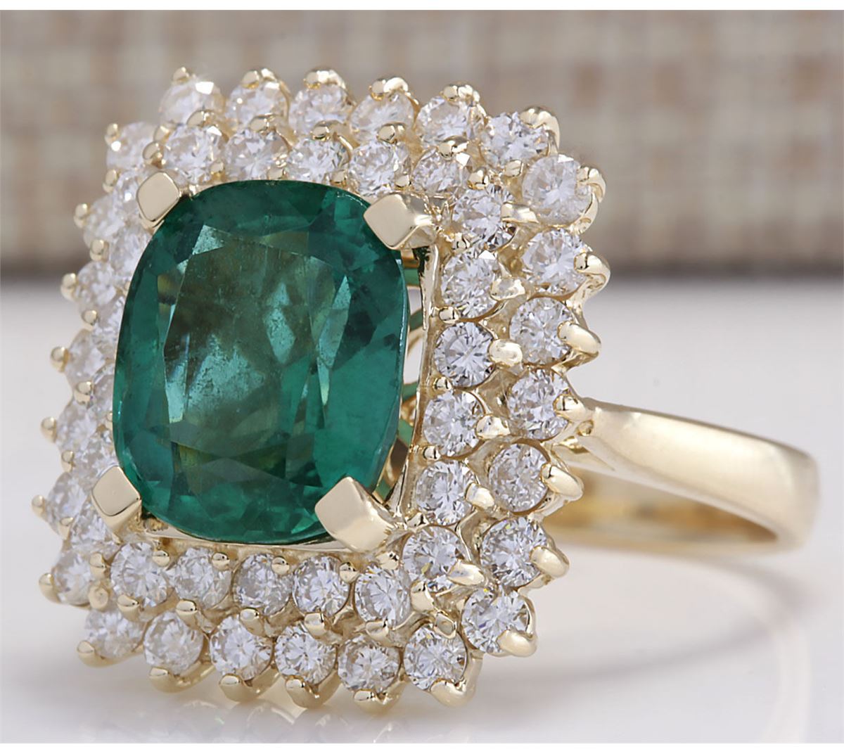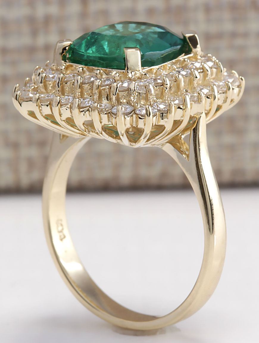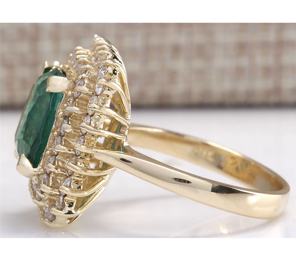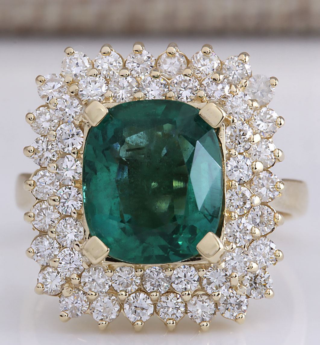 Stamped: 14K Ring Size: 7 Total Ring Weight: 7 Grams Diamond Weight: Total natural diamond weight is 1.40carat. SI1-SI2 clarity / G-H color Gemstone Weight: Total Natural Emerald Weight is 3.87ctw (Measures: 10.36x8.97mm) High End Gemstone Face Measures: 18.55x16.87mm Main stone color: Green [SKU:702657]
