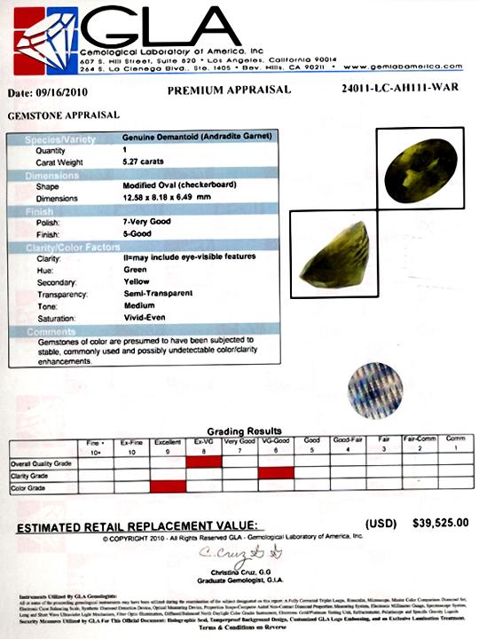 APPRAISALS & APPRAISAL ESTIMATES; WAR 5% LOOSE GEM GUARANTY
