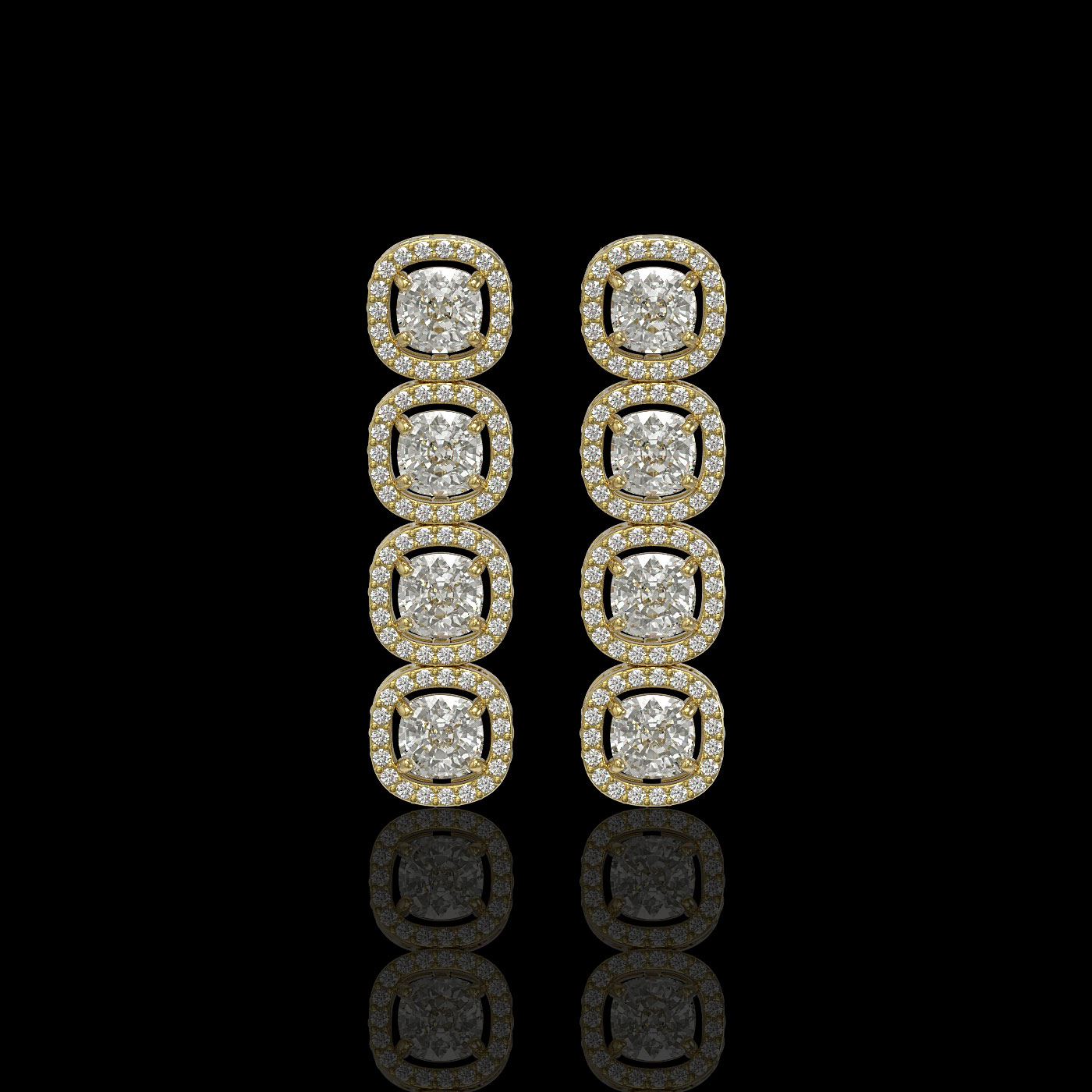 REF-981H6A -42631 ---- 5.28 CTW Cushion Diamond Designer Earrings 18K Yellow Gold ---- Luxury Designer Brand Earring Appraised at $43,200 Certificate Number US42631 18K Yellow gold, Earring Size is 1 1/4 Inches Long, Earring measuring approx. 8 x 32 mm Long, weighing in total approx. 8 grams. Made in the USA and is stamped 18K, Main stone 4.07 carat total weight containing 8 pieces of I-J color with VS/SI quality Cushion shape cut Diamond , Stone #2 1.21 carat total weight containing 152 pieces of G-H color with VS/SI quality Round shape cut Diamond