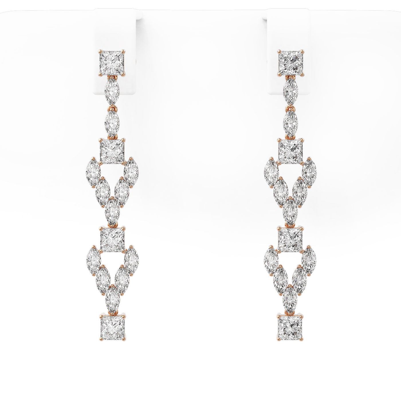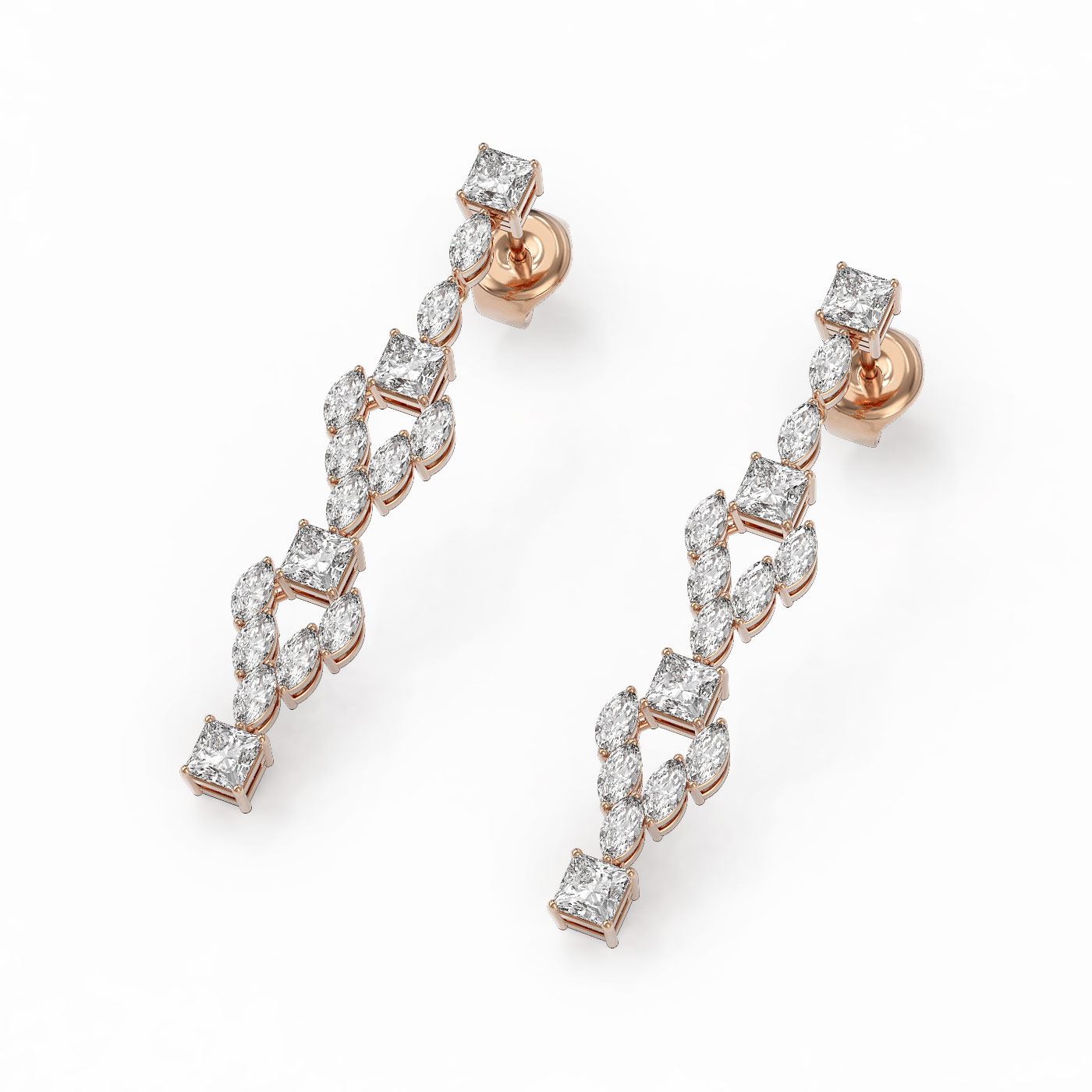 5.28 ctw Princess and Marquise Diamond Earrings 18K Rose Gold