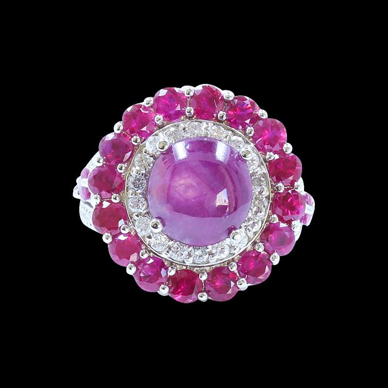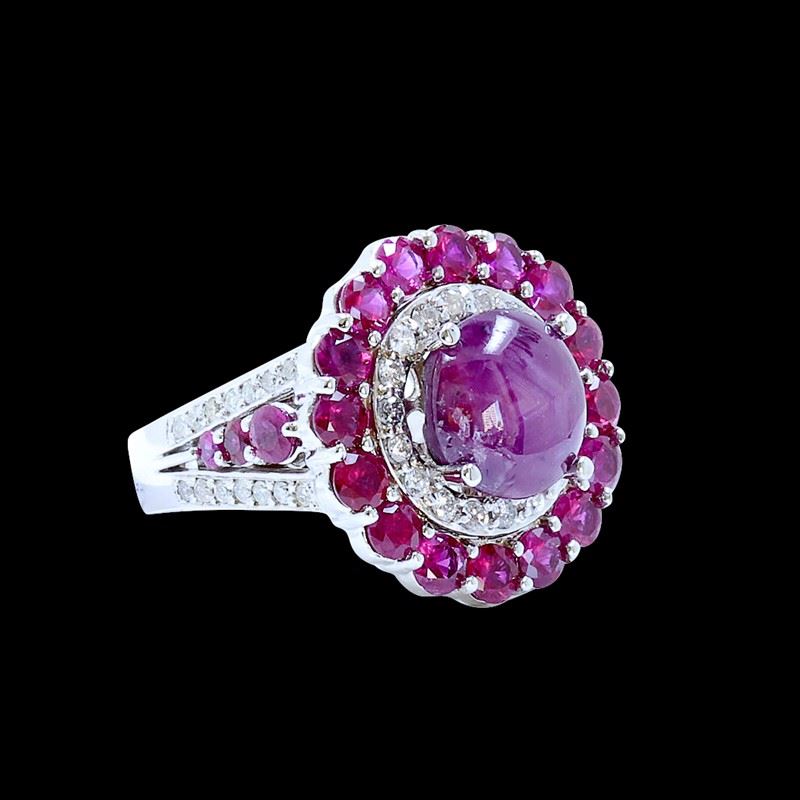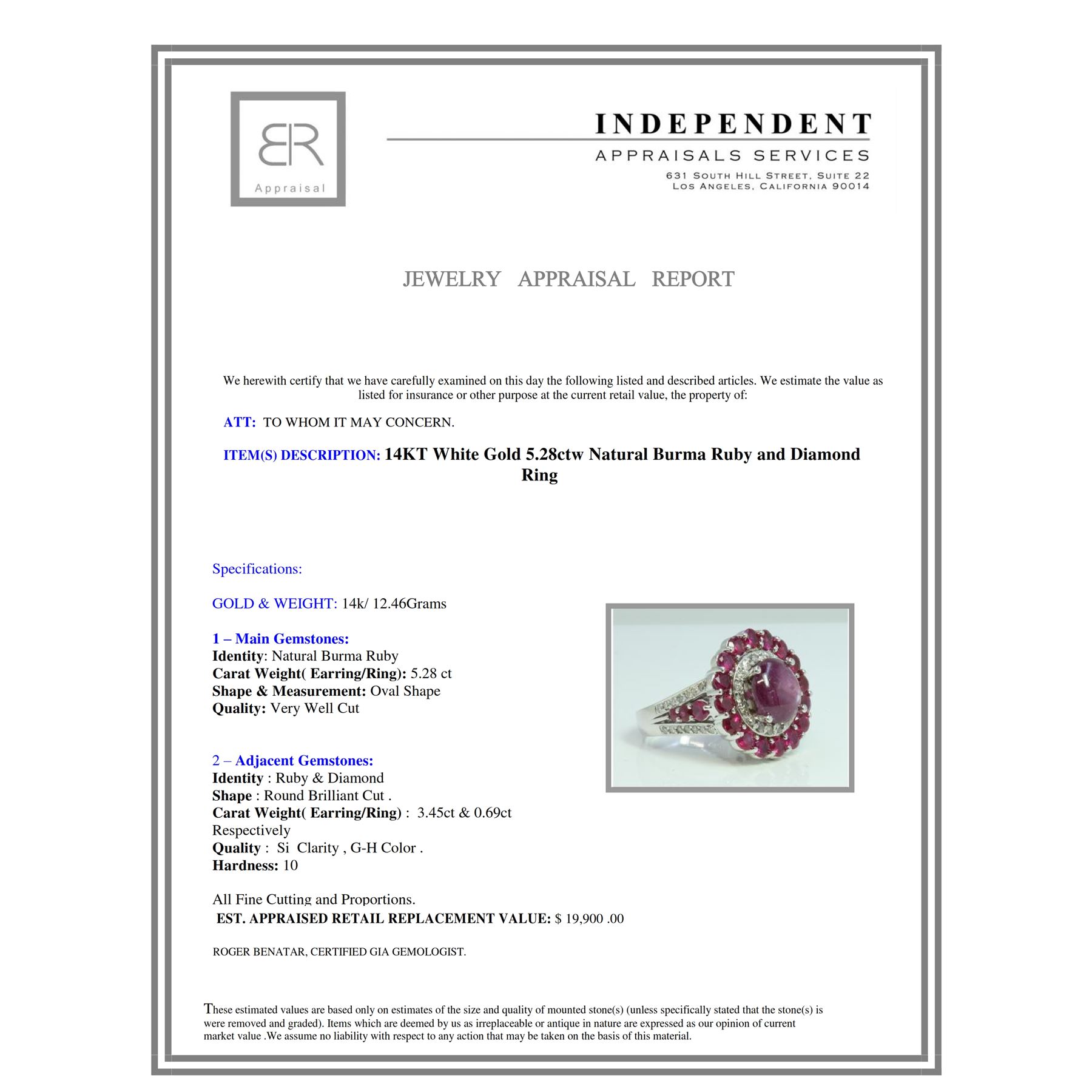 14KW/G RING :12.46GM / NATURAL STAR RUBY BURMA CENTER:5.28CT / DIA:0.69CT / RUBY (SIDE): 3.45CT /#GVR1360