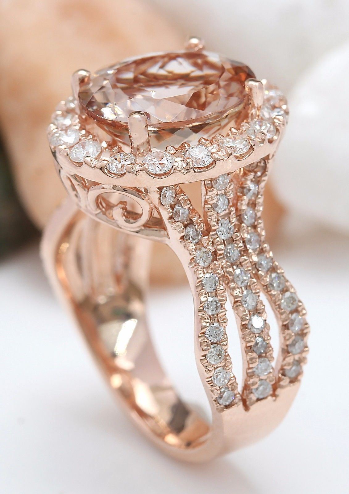 5.29 Carat Natural Morganite 14K Solid Rose Gold Diamond Ring