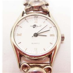 Backside of the Teddy Bear Bracelet reads Sterling .925 in several places. The watch face is Stainless & Alloy