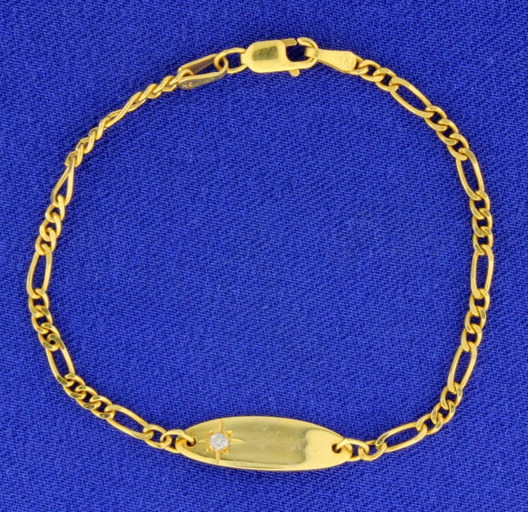 14K yellow gold, it contains a .04ct round diamond. 2.5g