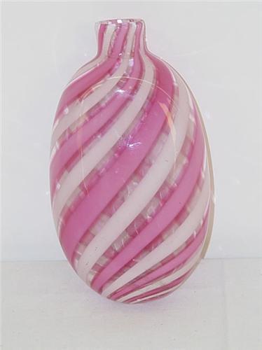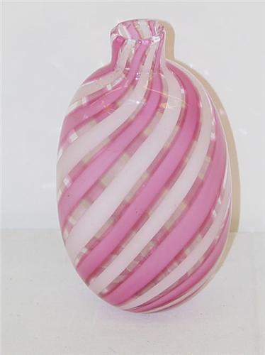 5 3/4" NAILSEA TYPE FLASK-PINK & WHITE RIBBON W/ OPEN PONTIL (POSSIBLY SANDWICH) - NORMAL WEAR;