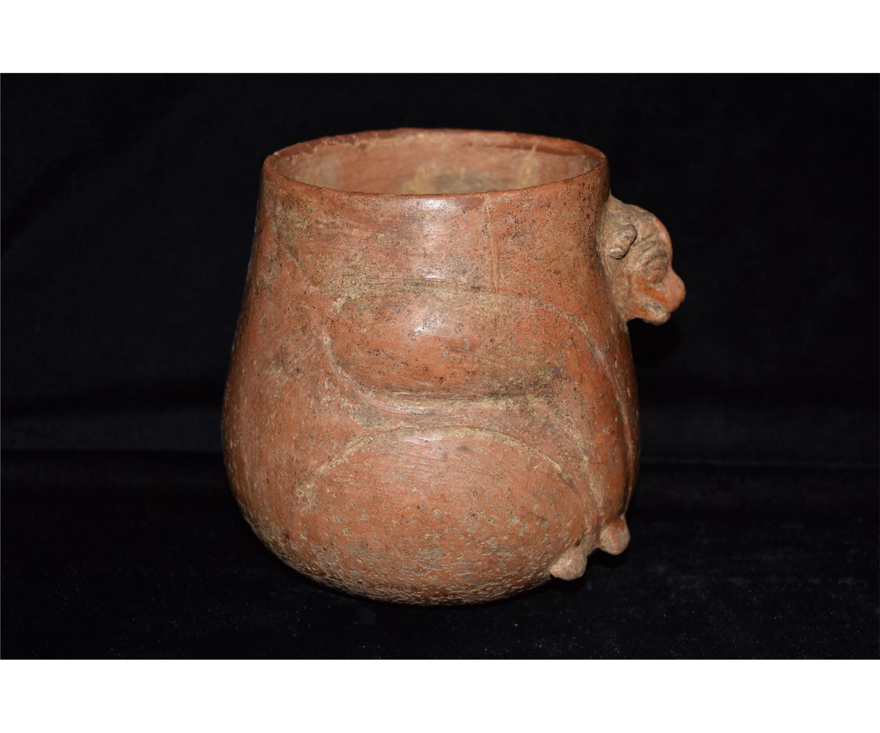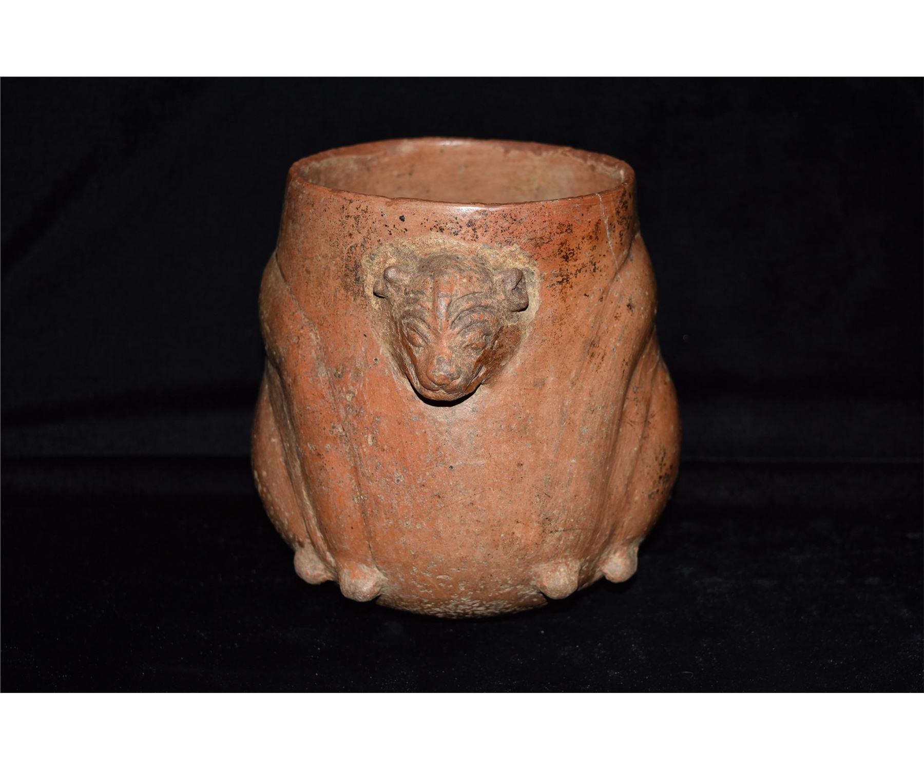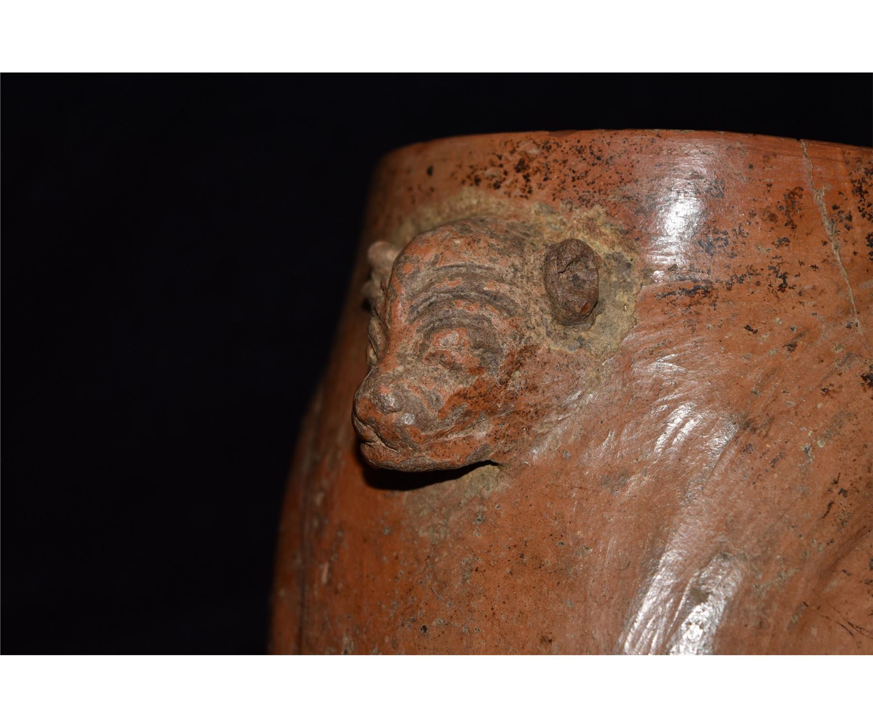5 3/4" Tall Mayan Vessel, Cougar Effigy, Beautifully
