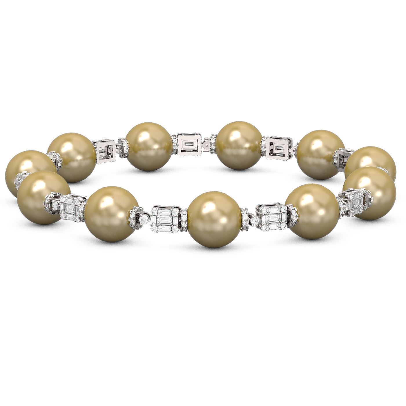 SKU: 61154 ---- 5.3 ctw Diamond & Pearl Bracelet 18K White Gold