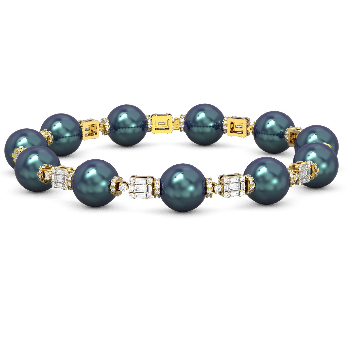 REF-626K4Y - SKU: 61159 ---- 5.3 ctw Diamond & Pearl Bracelet 18K Yellow Gold
