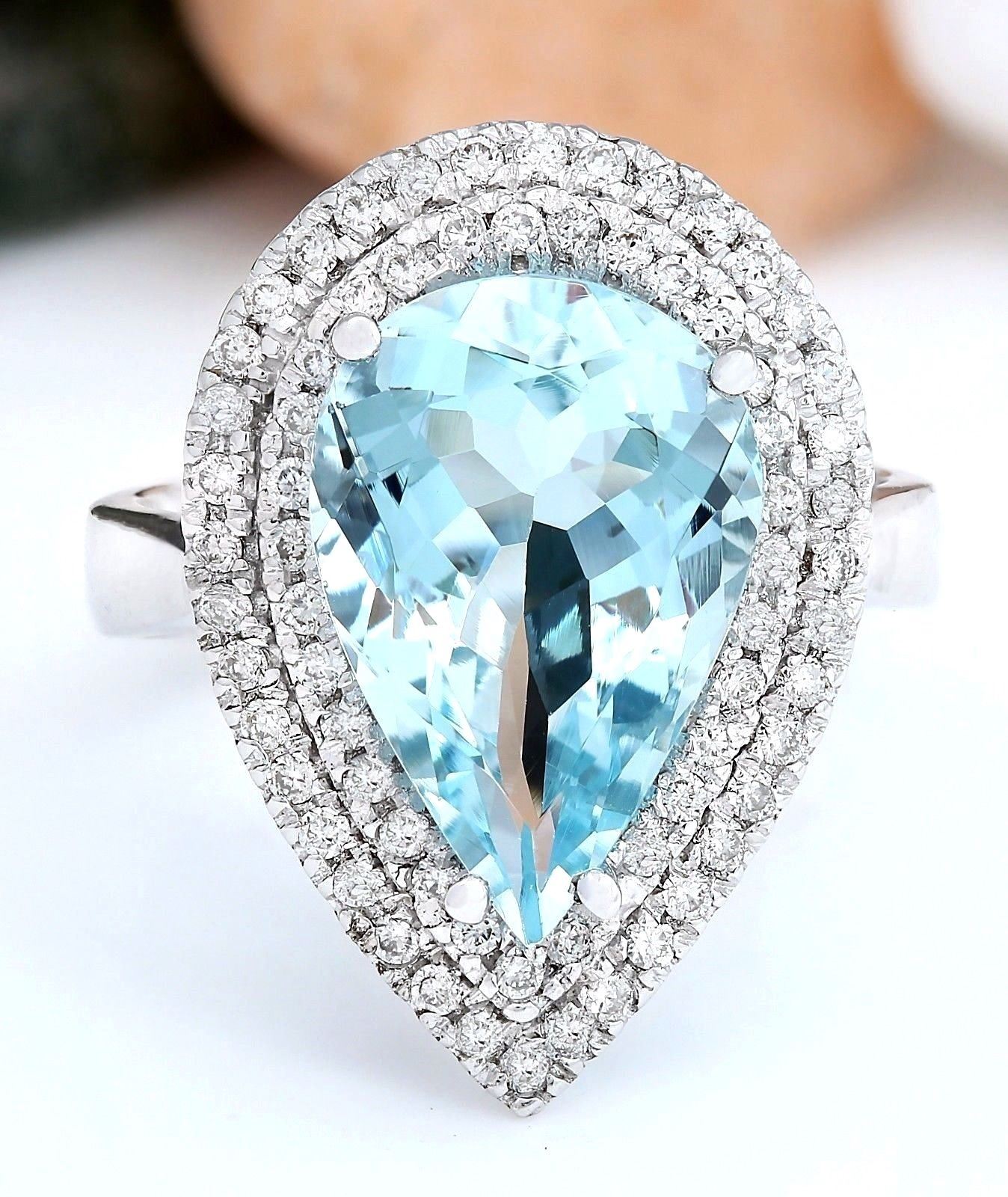 5.30 Carat Natural Aquamarine 18K Solid White Gold Diamond Ring