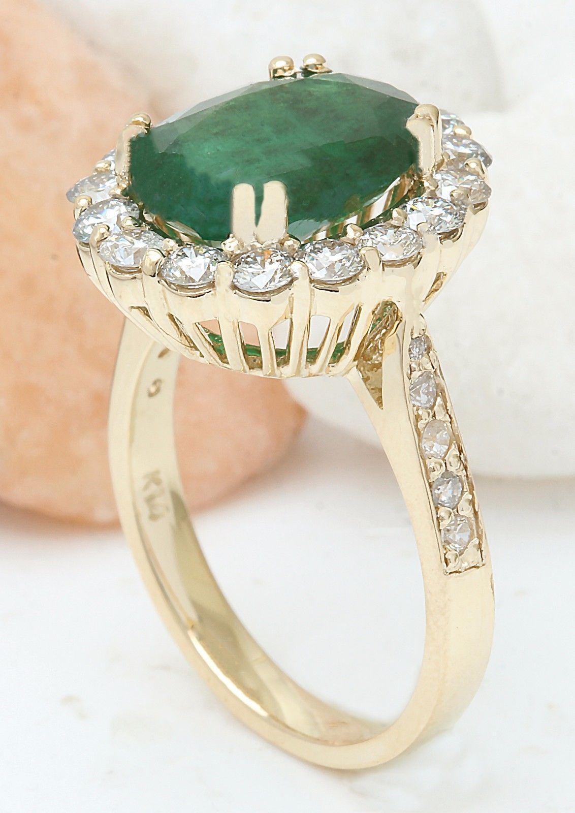 5.30 Carat Natural Emerald 18K Solid Yellow Gold Diamond Ring