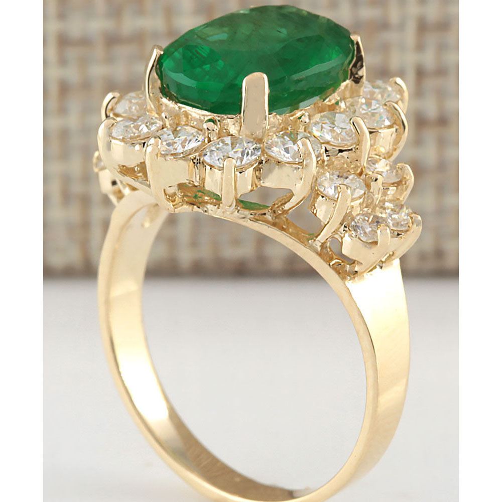 5.30 CTW Natural Emerald And Diamond Ring In 14K Yellow Gold