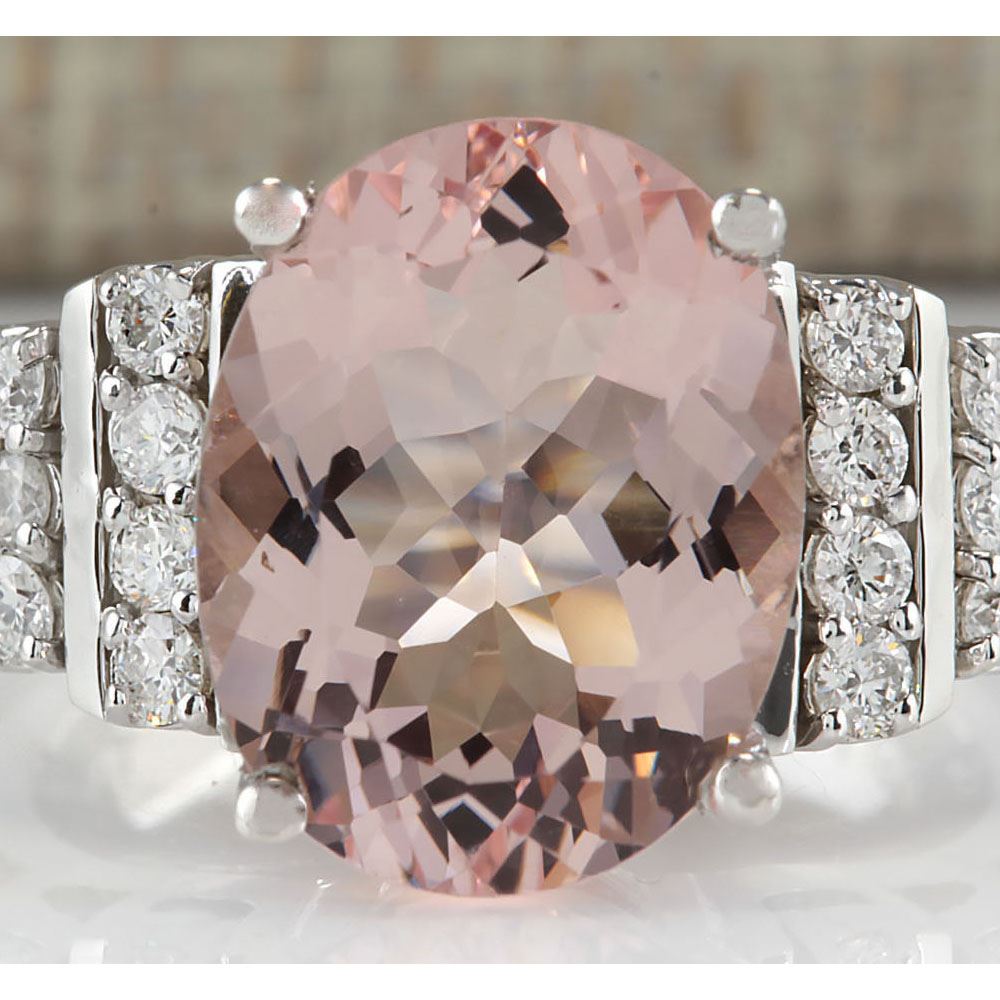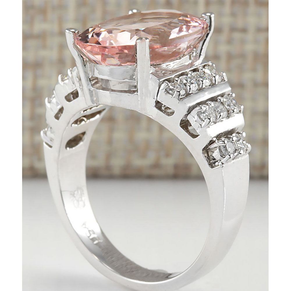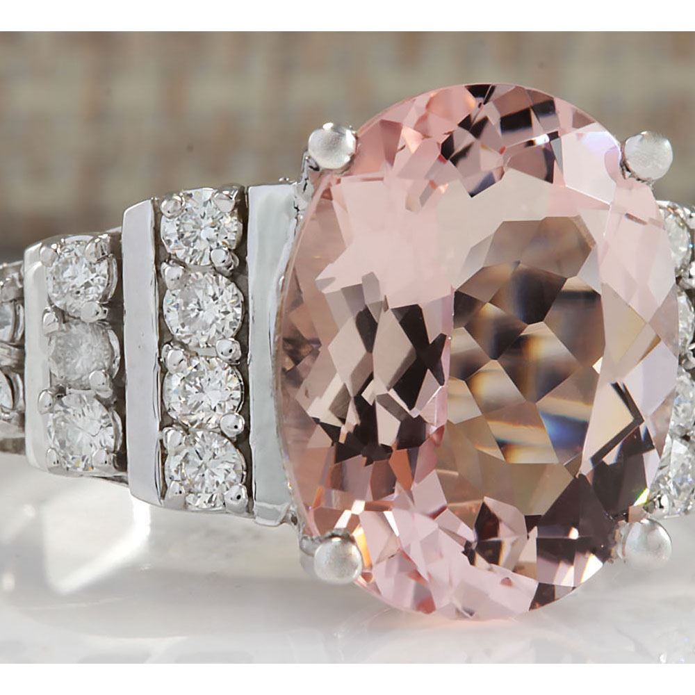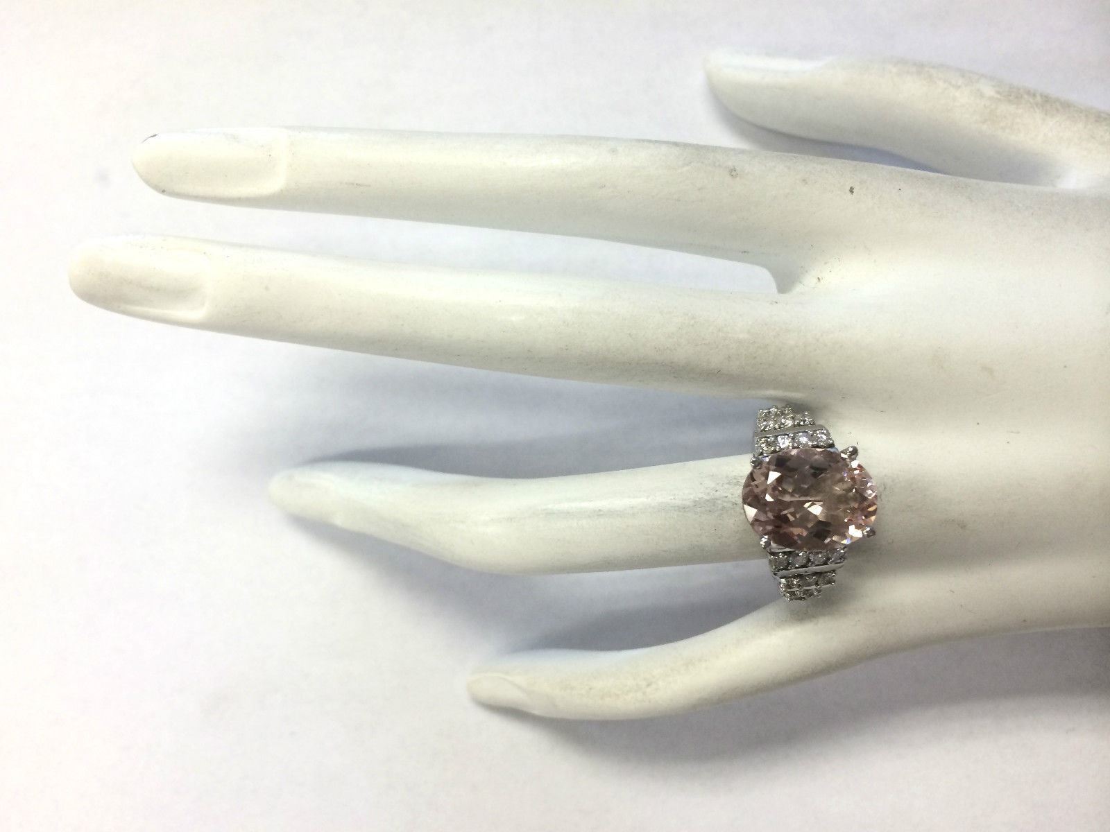 5.30 CTW Natural Morganite And Diamond Ring 18K Solid White Gold